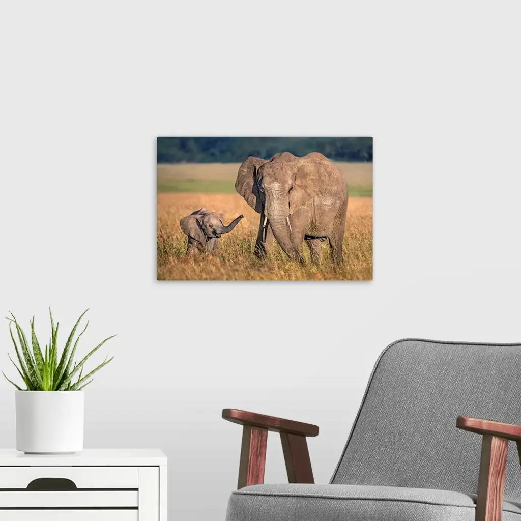 Mom Elephant With Calf wall art for home and office decor. Discover canvas art prints, photos, mural, big canvas art and framed wall art in GreatBigCanvas.com's varied collections.