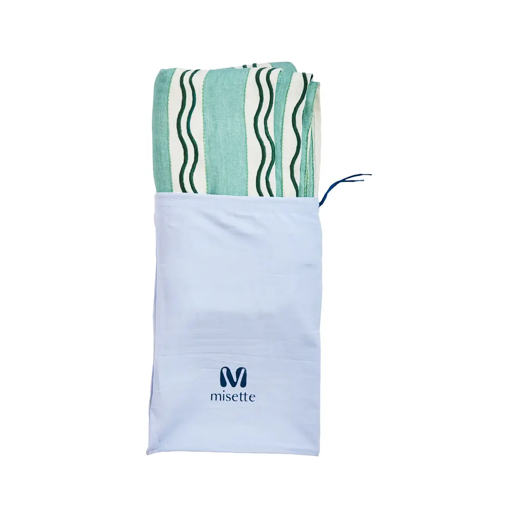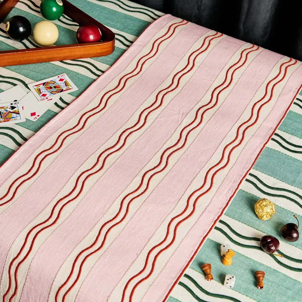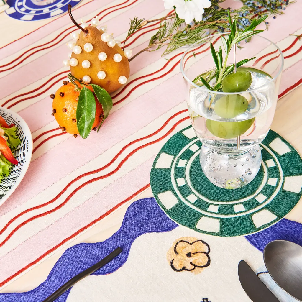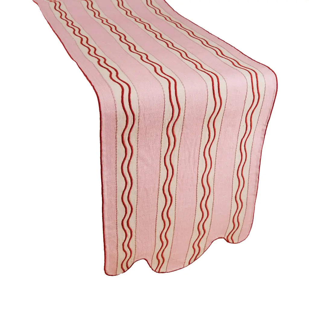 Elevate your dining experience with the Monaco Stripe Embroidered Linen Runner from Misette. Crafted from luxurious, machine-washable linen, its refined stripes and eye-catching color combinations bring subtle sophistication to your table. At 85 inches long, this runner is designed to accent larger dining tables, while inspiring lively conversations. Softening beautifully with time, this runner is a striking addition to your home. Highlights