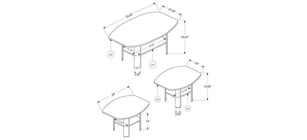 Giving your living room a refresher has never been easier thanks to the Monarch Specialties 3-pc. Table Set. Its modern angled design is safe for the kids and pets, while the lower storage shelves are ideal for extra magazines, books or decorative items. For a new homey feel, you're in the right place.