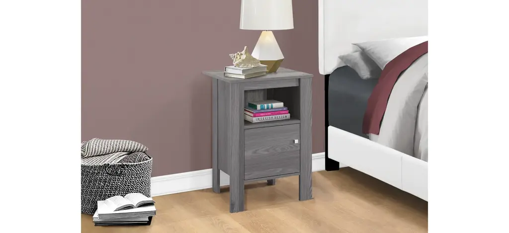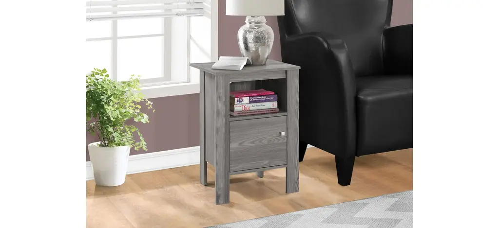 Bring an industrial and contemporary design together with the Monarch Specialties Side Table. In a compact format, it has ample surface space for a few decorations, books or a laptop/tablet thanks to an open shelf and closed cabinet with a beautiful square knob. Make your small home, apartment or condo feel nice and homey and draw some attention to your stylish new side table.