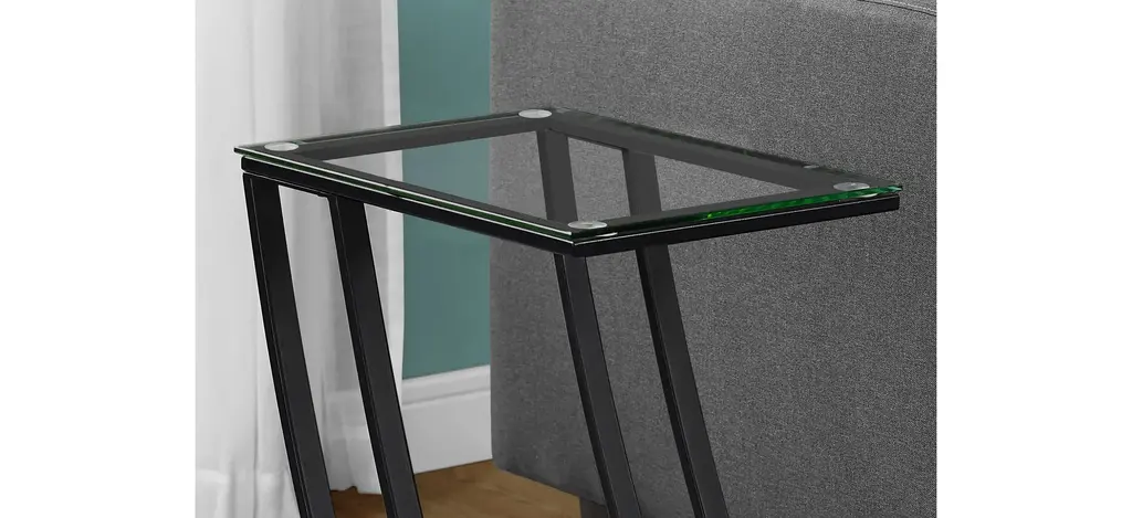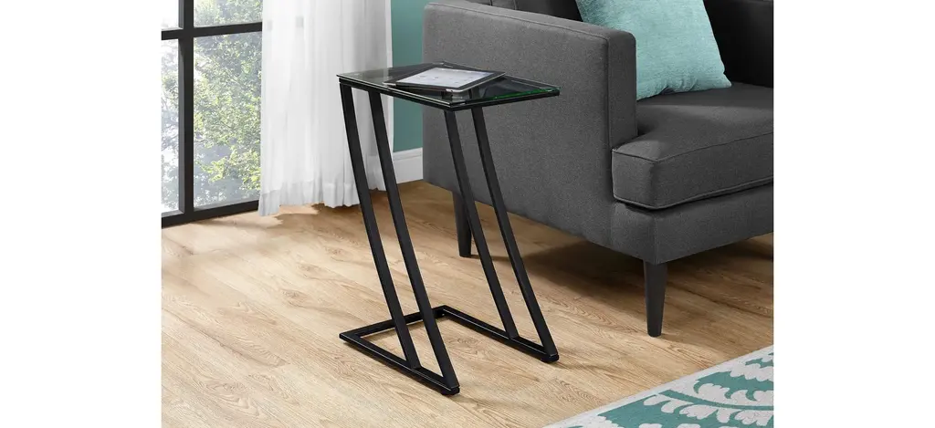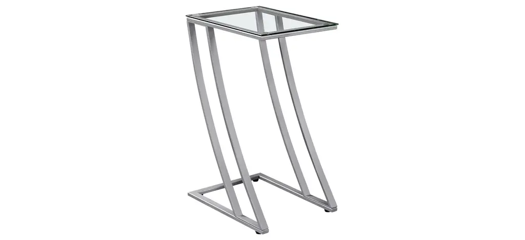 Add a touch of flair and a unique twist to your contemporary space with the Monarch Specialties Z Accent Table. The sophisticated finish with a clear tempered glass surface has space to place your tablet, a book, drink or snacks. Multi-functional to use as an end table or as an extra serving table when entertaining or watching TV. You will want this accent table for every room! Assembly is required.