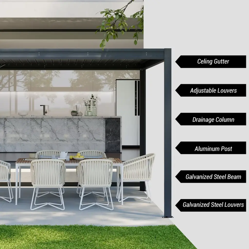 Discover Mondawe Latest Louvered Pergola Series! Bulit to premium materials and advanced drainage system, it promises long-lasting and timeless elegance. Based on our classic design, we've optimized the structure for a fresh backyard experience.
