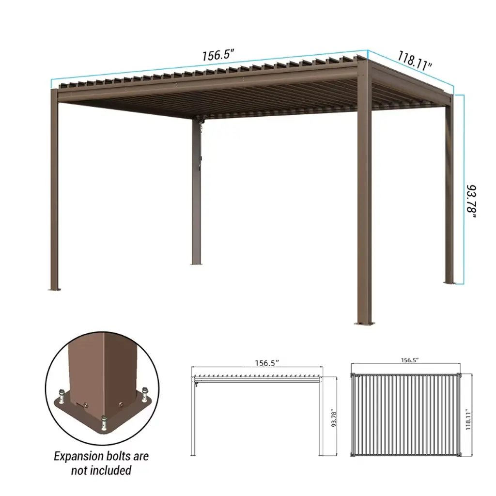 Mondawe 10x13ft Outdoor Louvered Aluminum Pergola With Adjustable Roof And Efficient Drainage System For Patio, Deck, Garden, Brown
