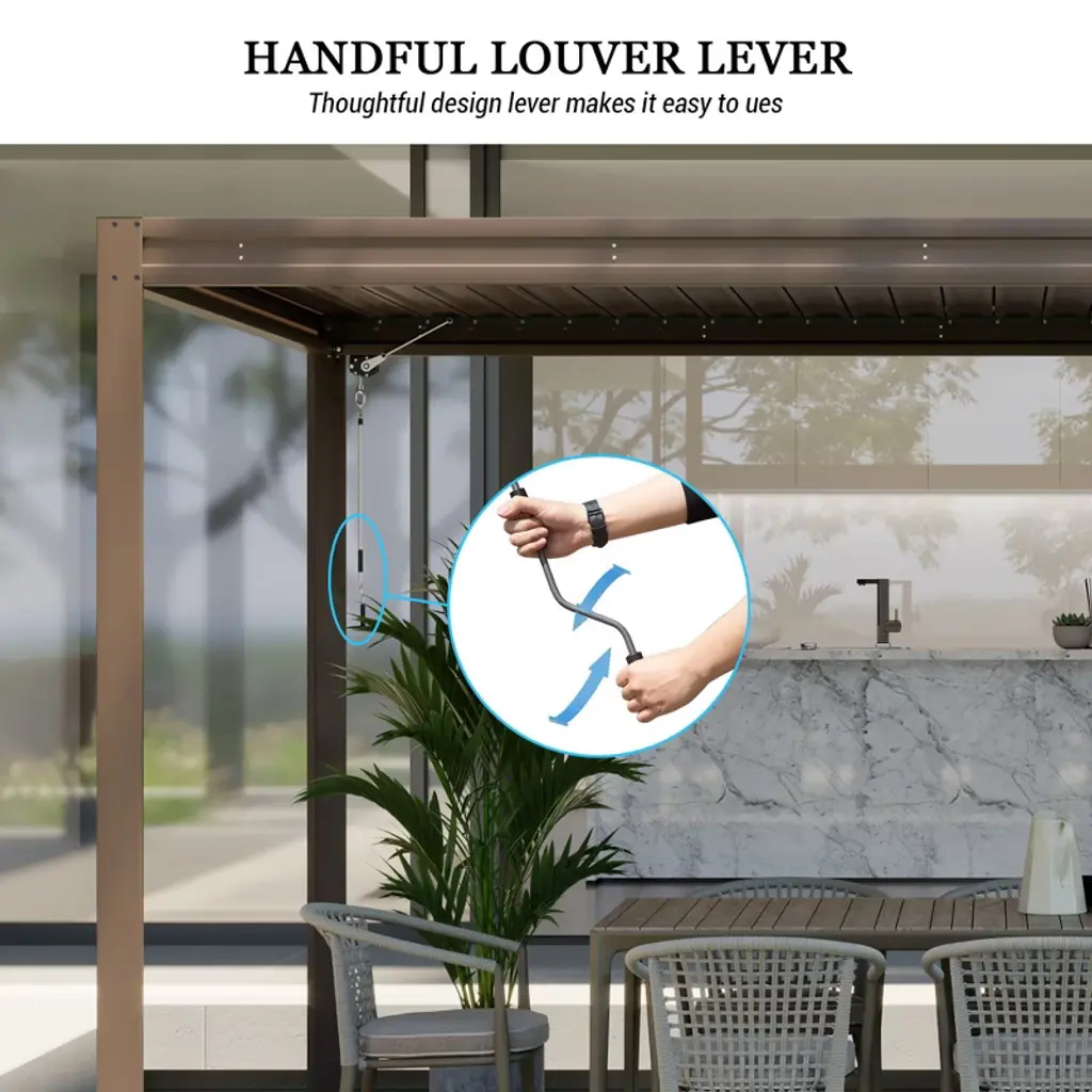 Mondawe 10x13ft Outdoor Louvered Aluminum Pergola With Adjustable Roof And Efficient Drainage System For Patio, Deck, Garden, Wood