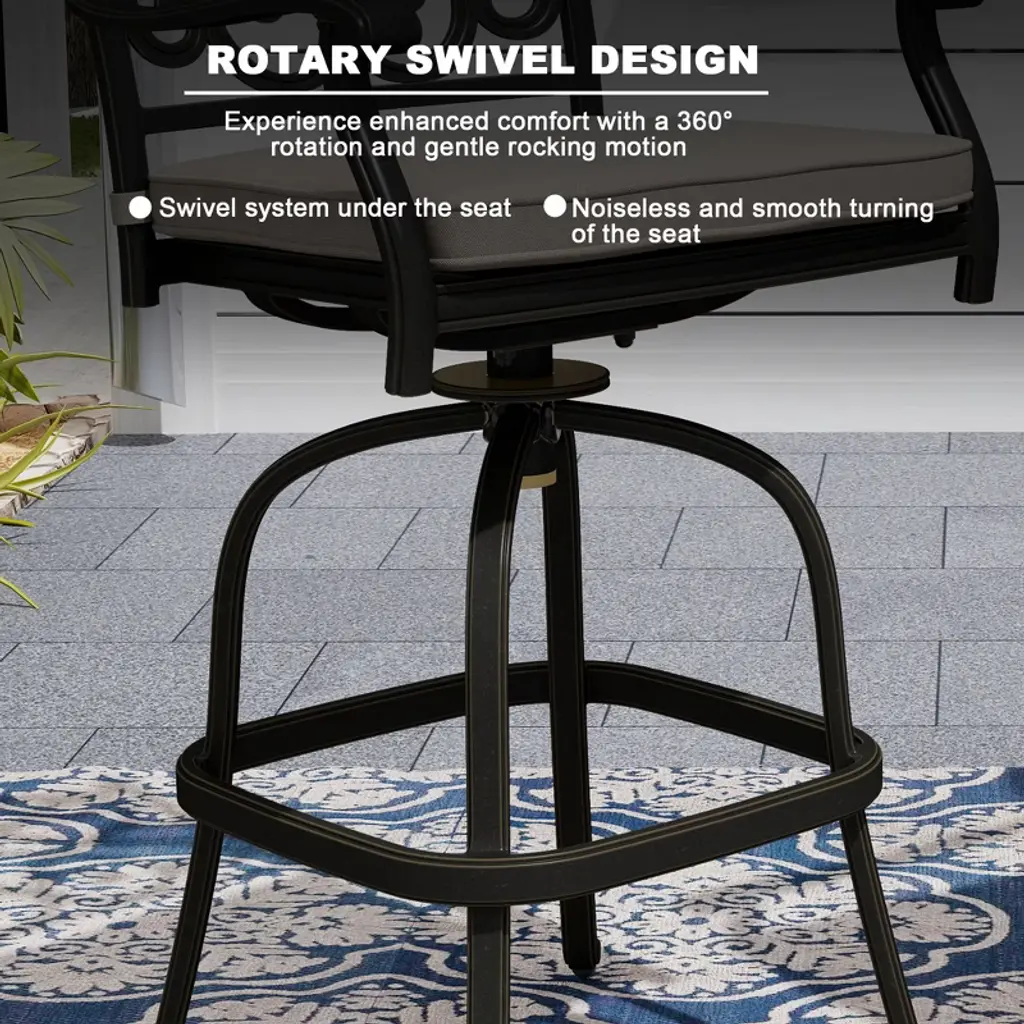 Made of Cast Aluminum frame and Olefin fabric, our dining bar chairs combine simple appearance with great comfort. The backrest of each chair is decorated with classic vintage floral pattern, which adds to the elegant touch of the entire series. Perfect for having dinner with your closest friends.