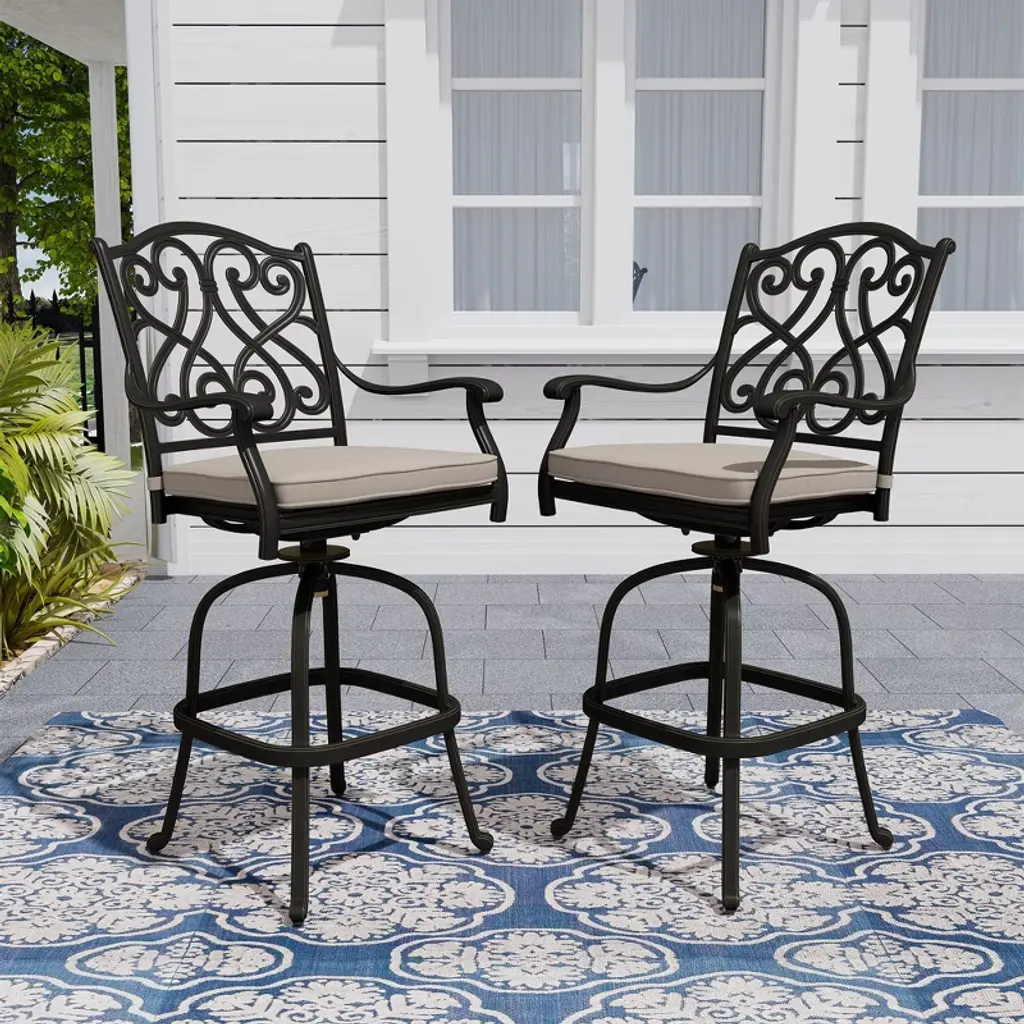 Mondawe Bar Chair Cast Aluminum Outdoor High Back Stool With Cushion (Set Of 2) Blue