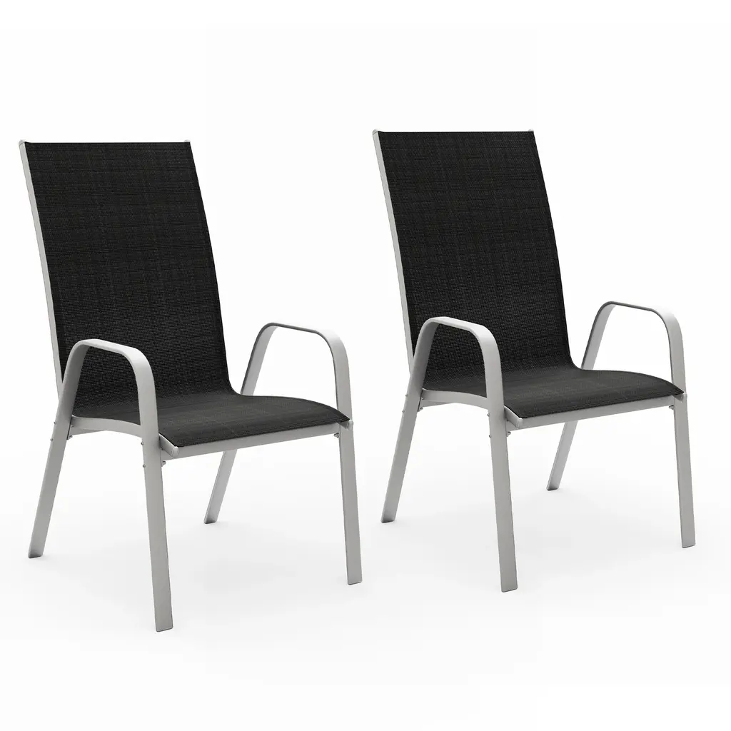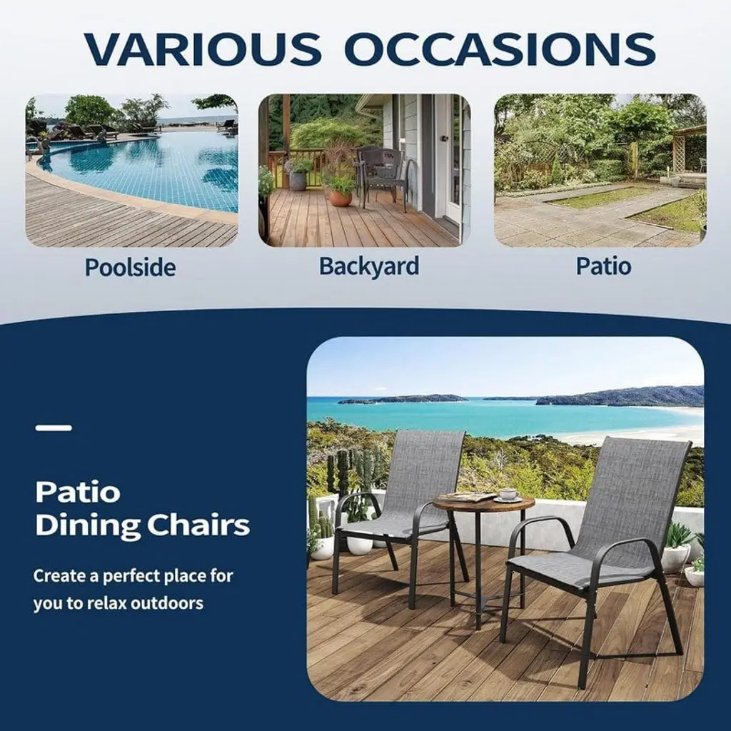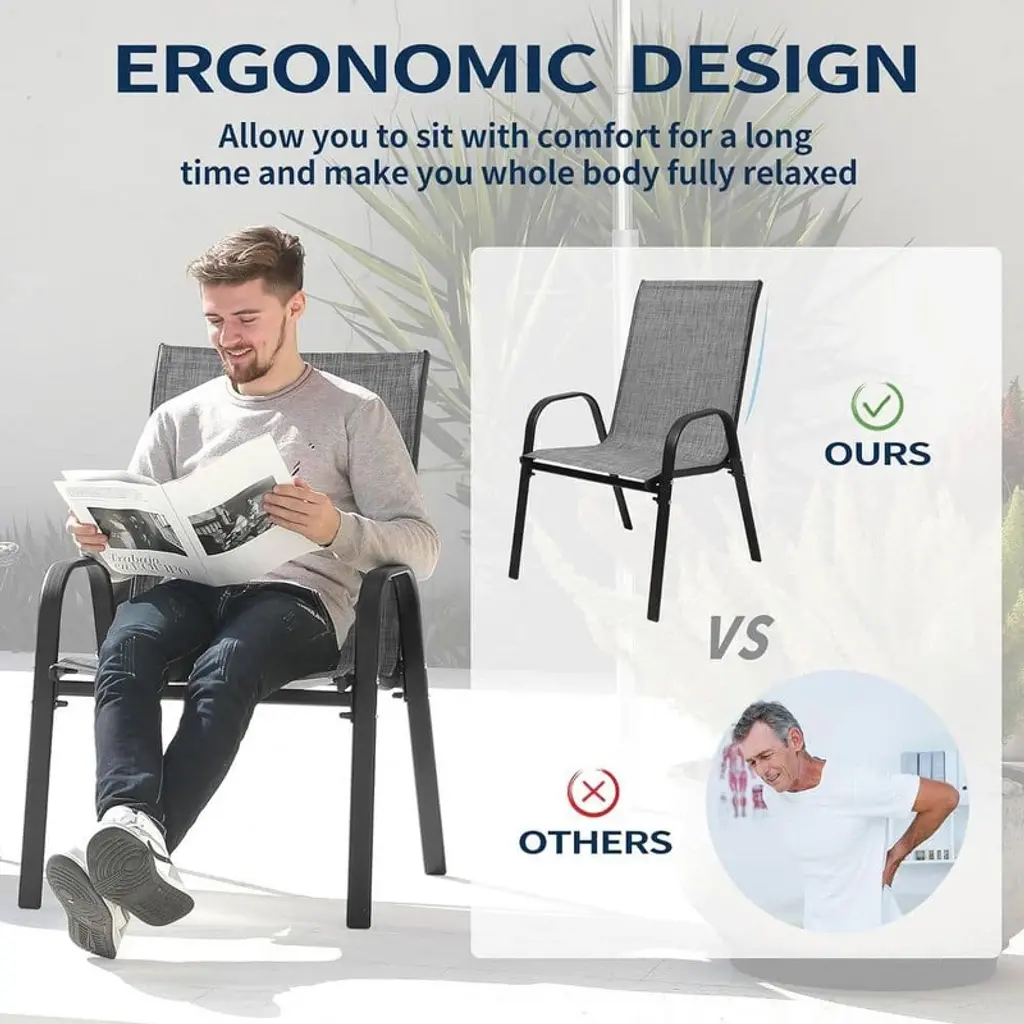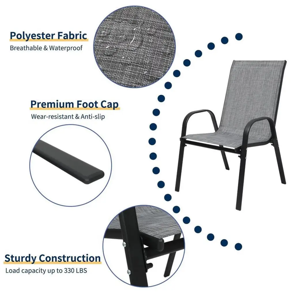 Enjoy outdoor comfort anywhere with this 2-piece patio chair set. Featuring breathable, quick-dry fabric and a sturdy steel frame, each chair offers high-back support and ergonomic armrests. The stackable, lightweight design is perfect for patios, balconies, gardens, or campsites, easy to store, move, and enjoy anytime.