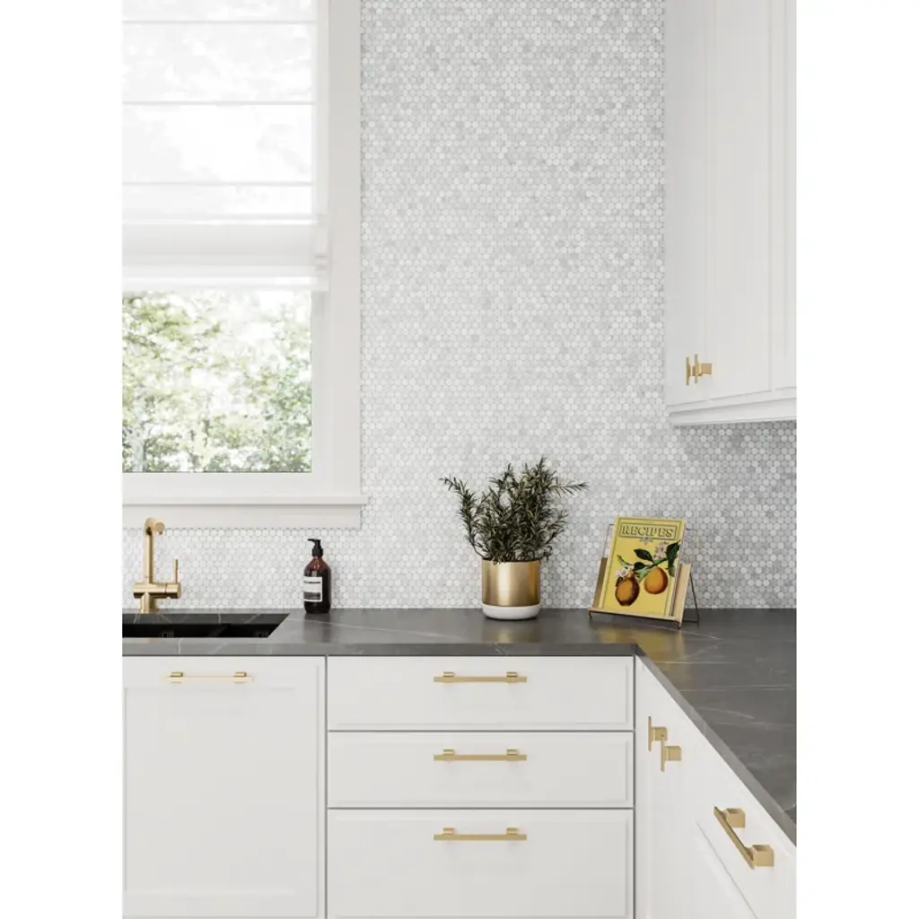 Embrace your artistic side with this collection, featuring marble mosaics in several elegant patterns, from simple to kaleidoscopic. Symmetry is at the heart of the collection, which brings uniform depth to any space.