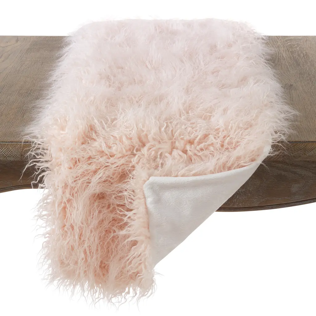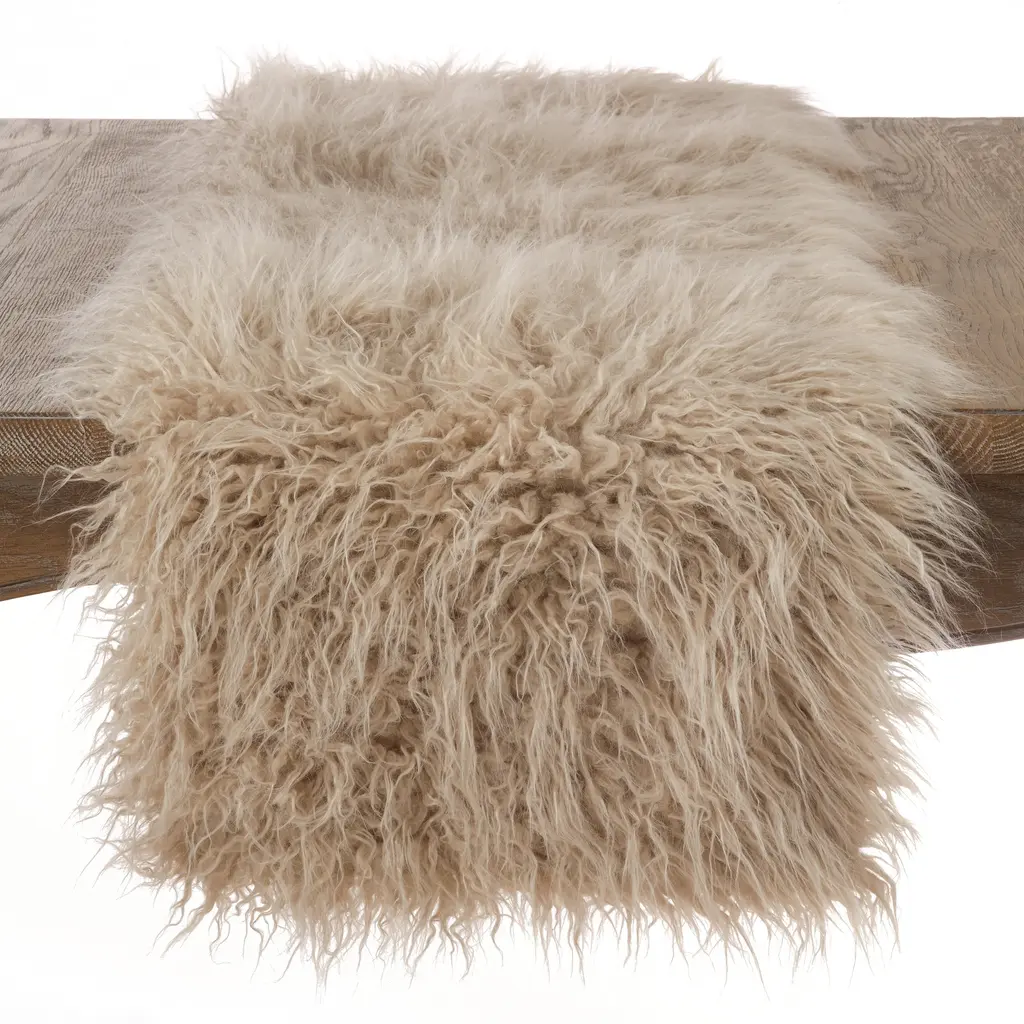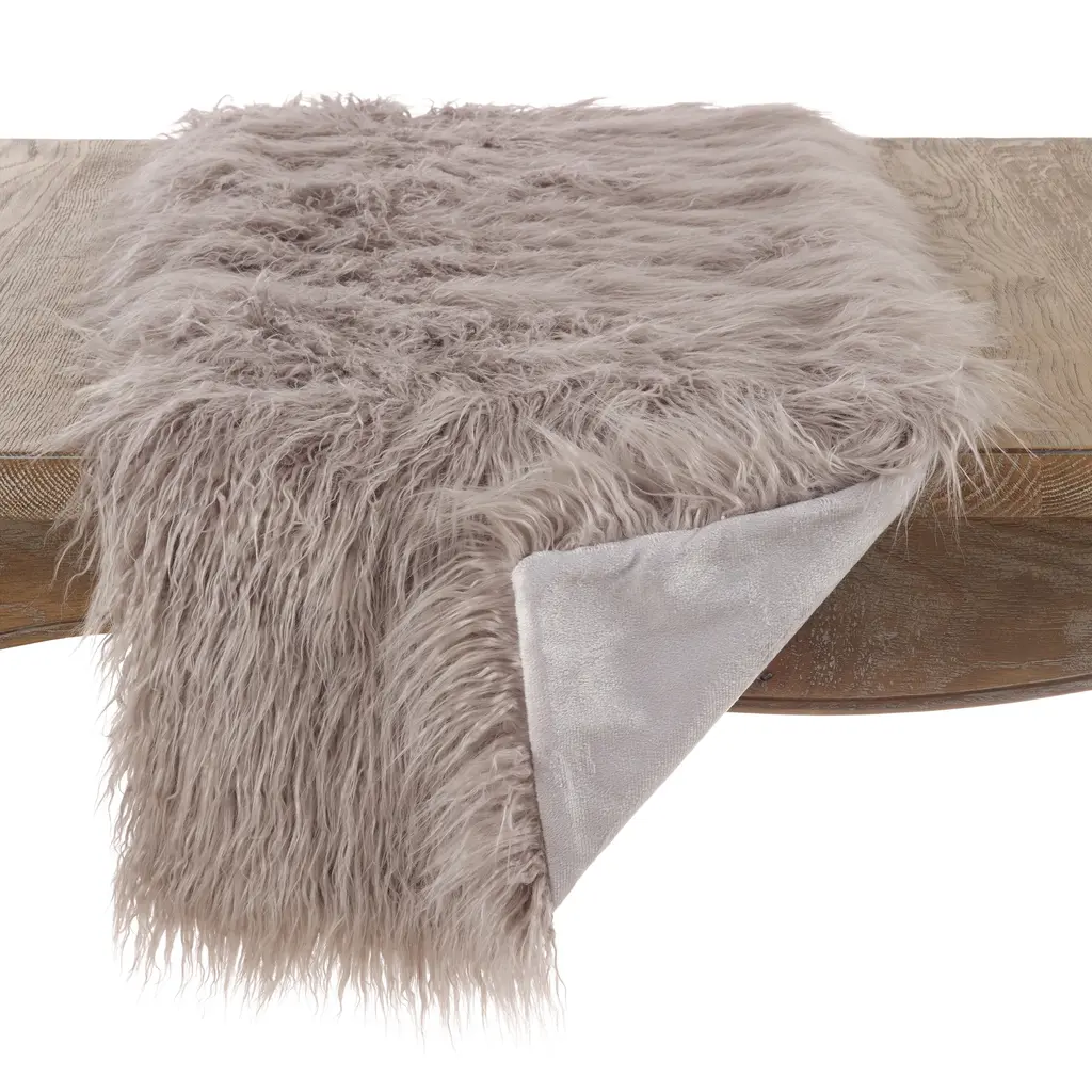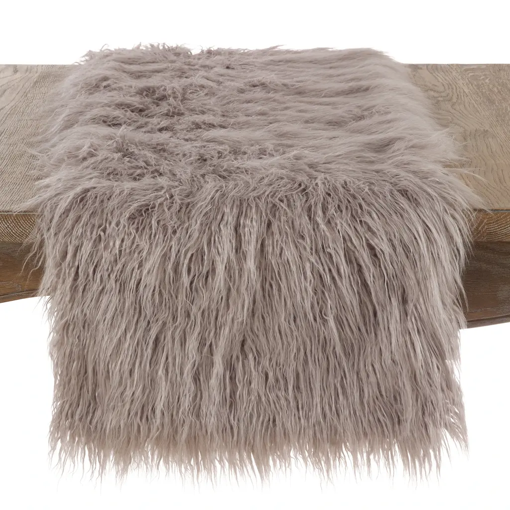 Elevate your table decor with Saro's Mongolian Faux Fur Runner. Designed with a modern and luxurious touch, this acrylic runner features a plush faux-fur design in eight neutral colors that fit seamlessly into any decor. Display the top side only and pair it with silver candelabras for an upscale feel.Features: