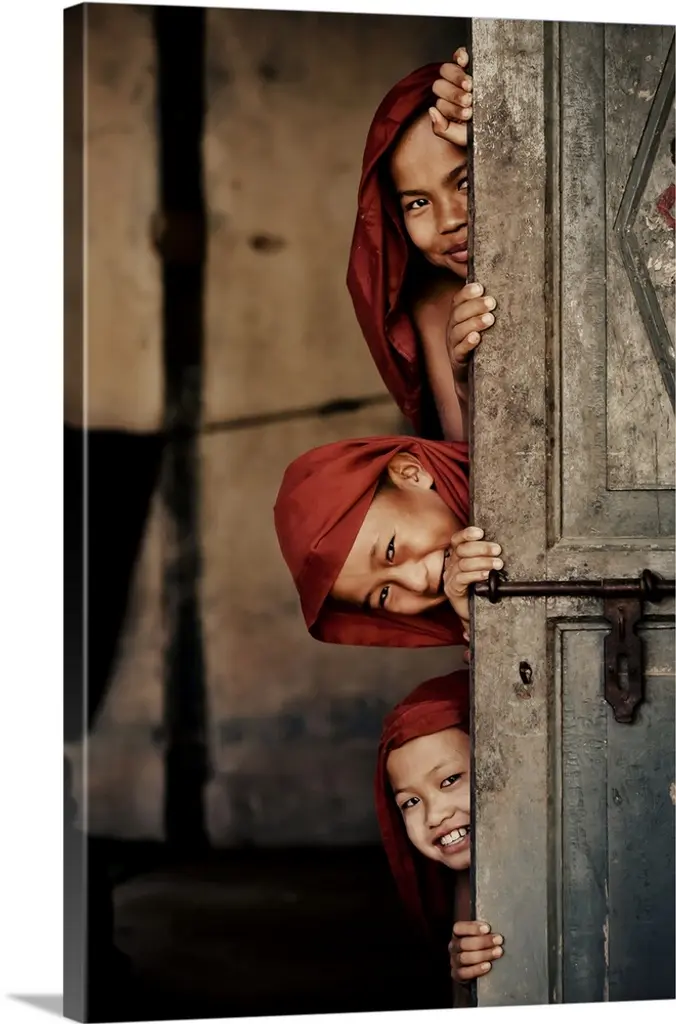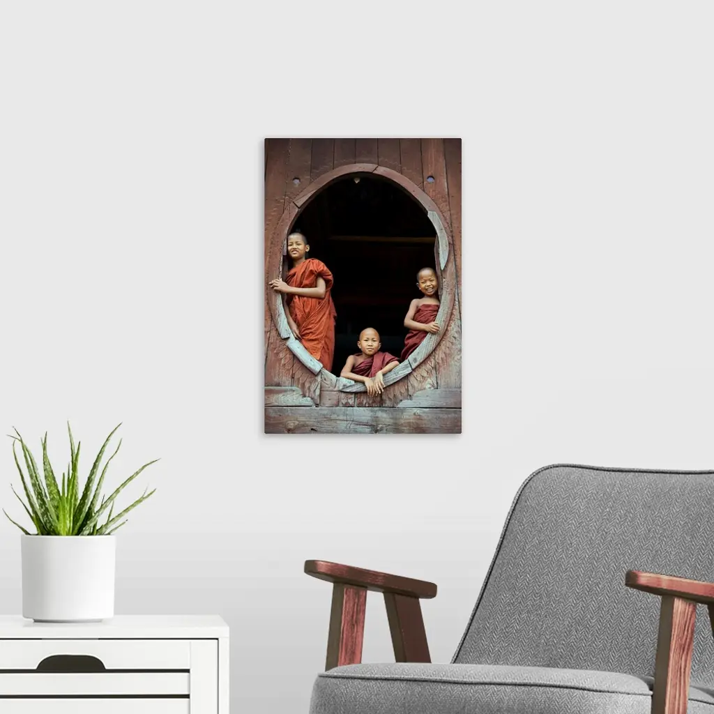 Monk Boys In Window Of Their Monastery, Inle Lake, Burma