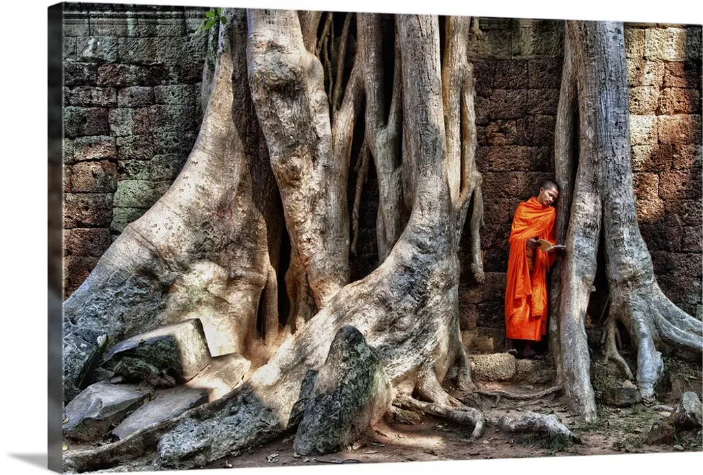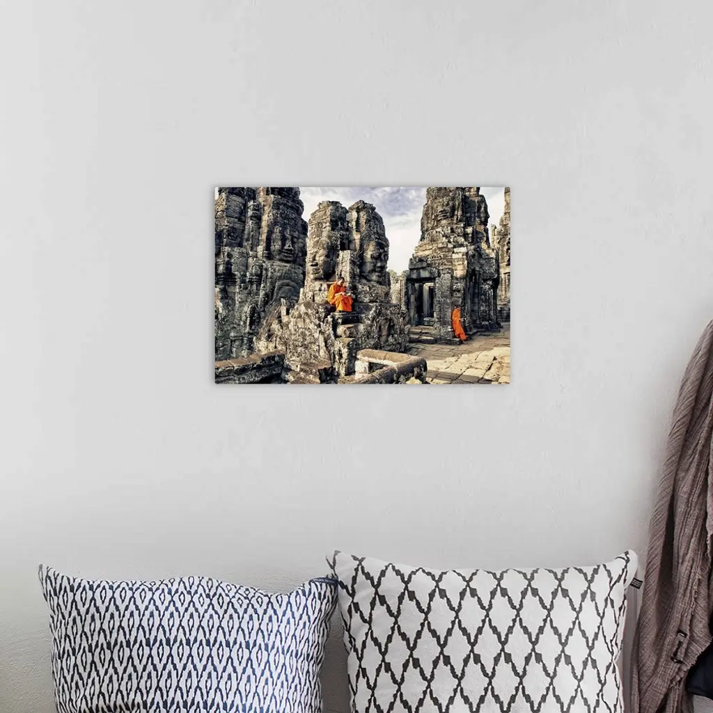 Monk boys reading on the Bayon Temple, Angkor Wat, Cambodia