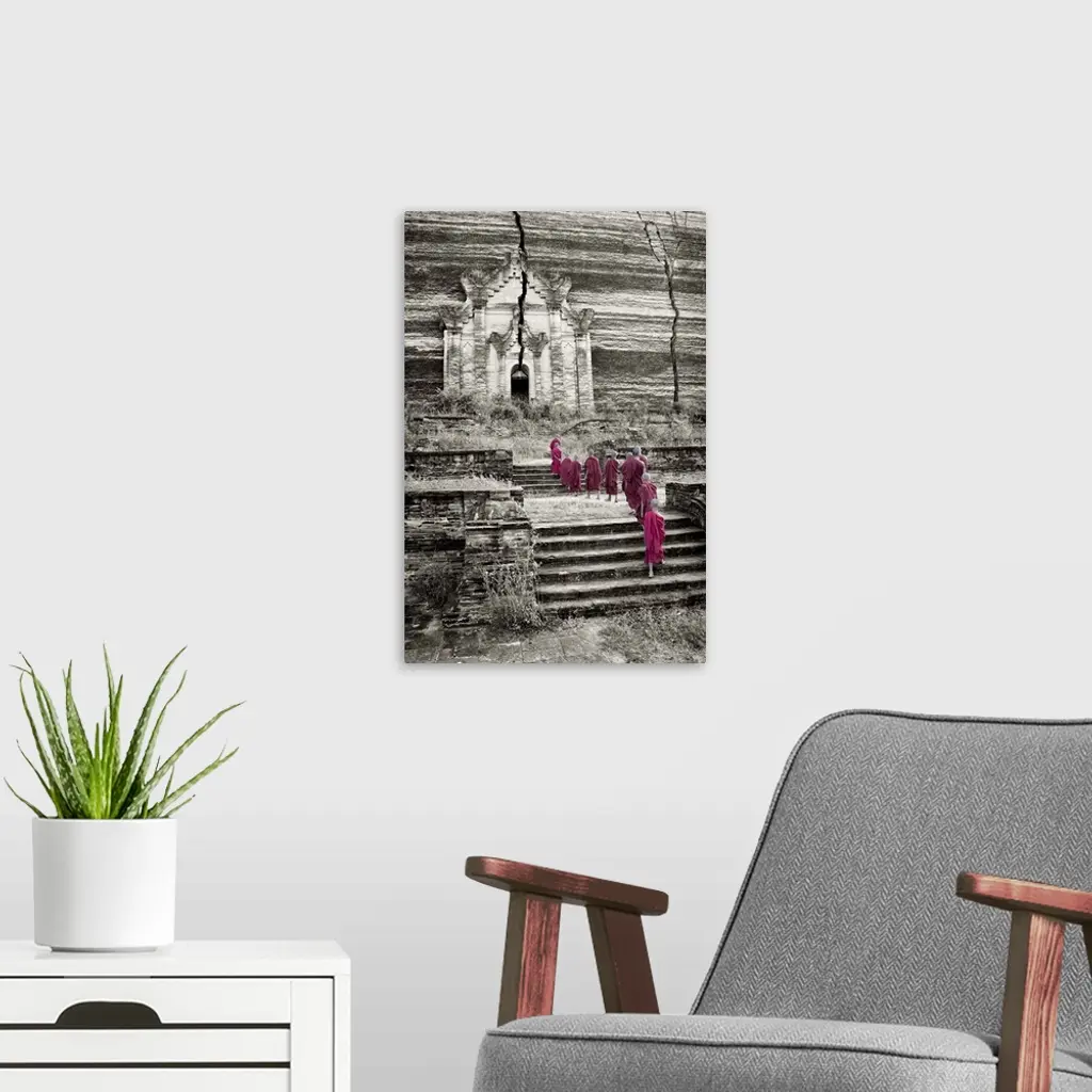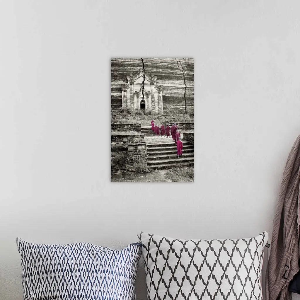 monk boys walking up to Mingun Temple in Mandalay, Burma