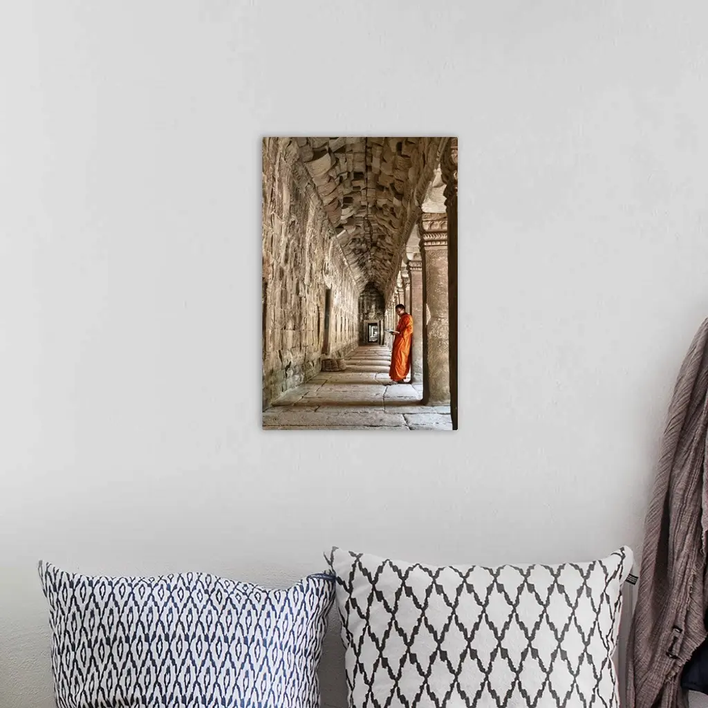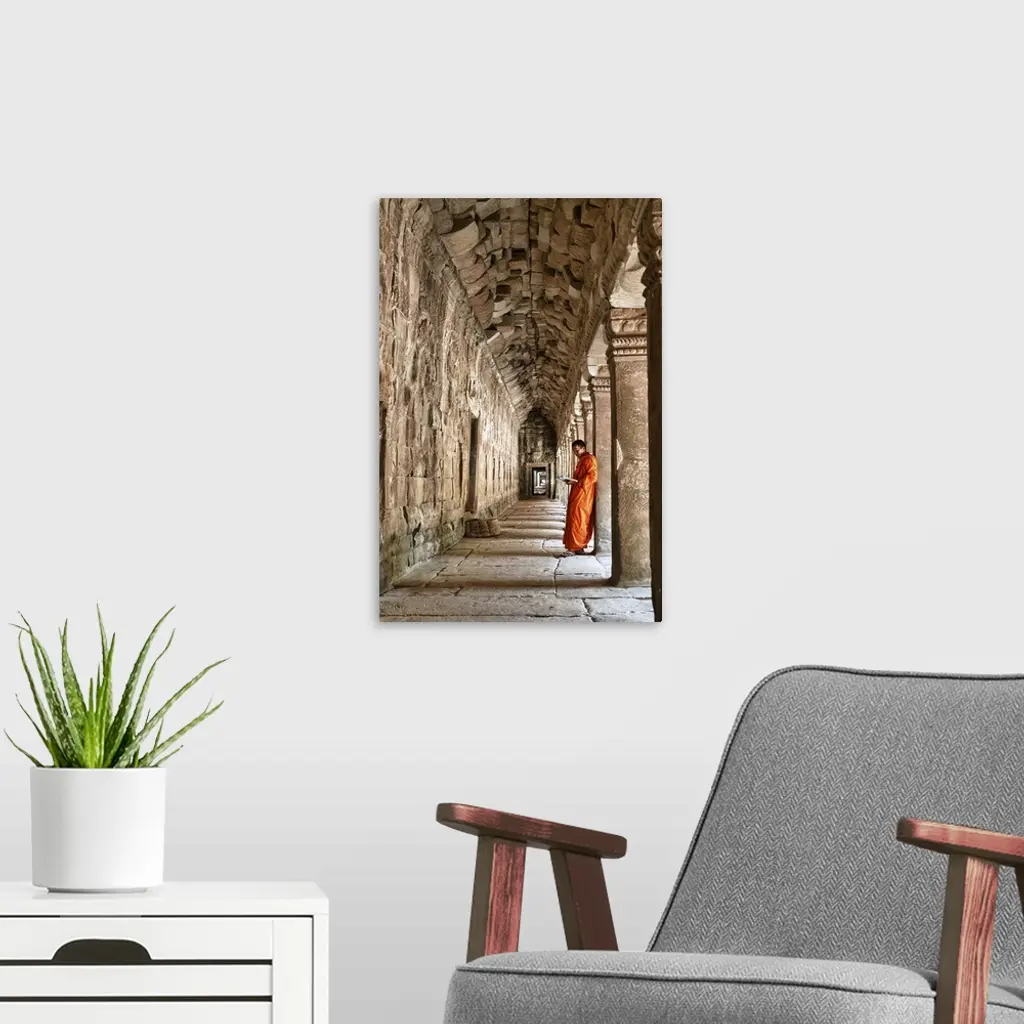 Monk reading in Angkor Wat, Cambodia wall art for home and office decor. Discover canvas art prints, photos, mural, big canvas art and framed wall art in GreatBigCanvas.com's varied collections.