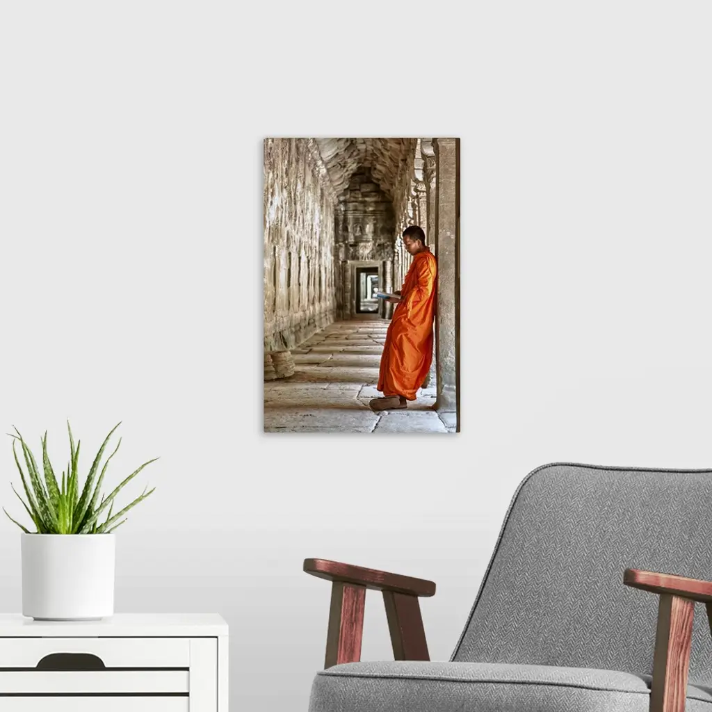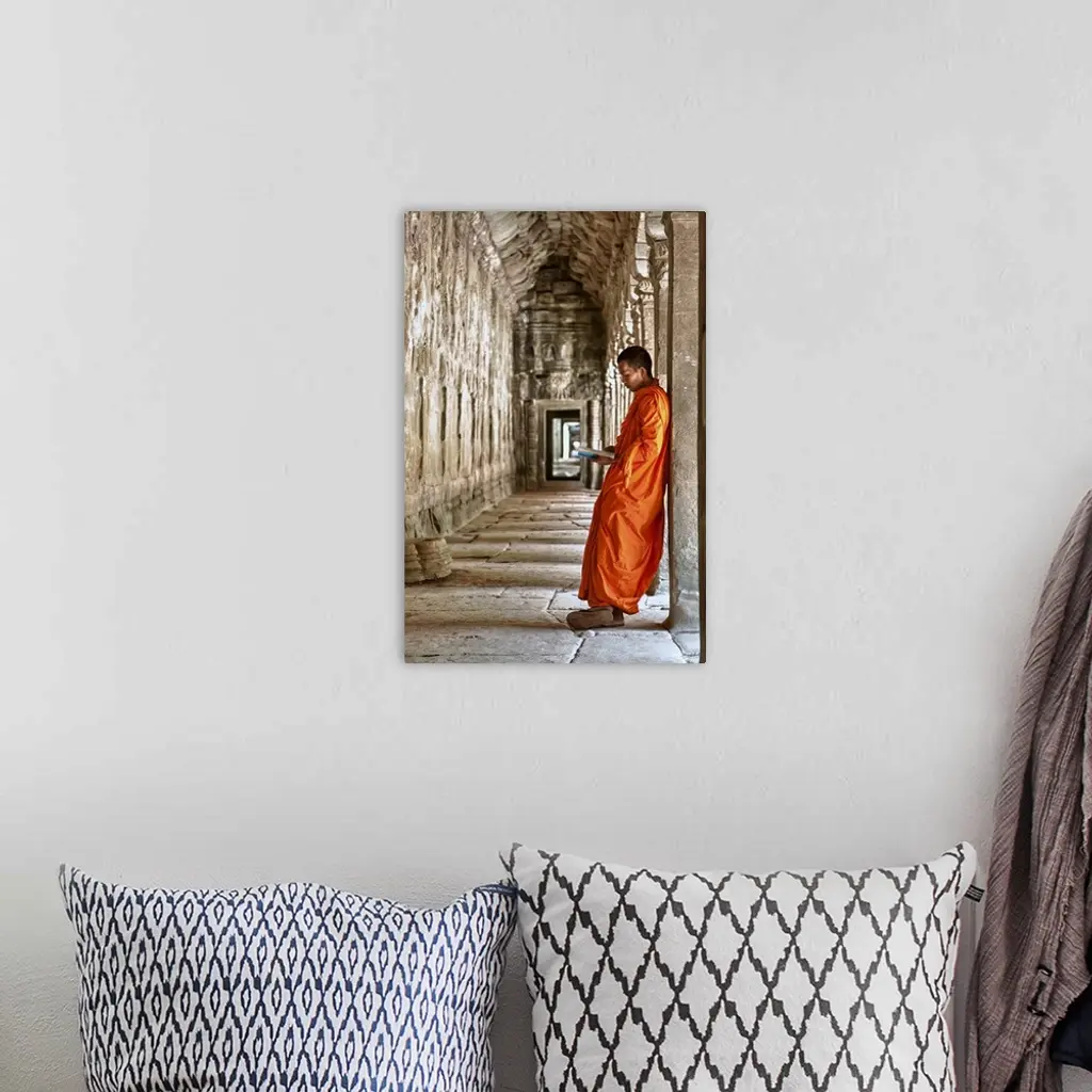 Monk reading in Angkor Wat, Cambodia wall art for home and office decor. Discover canvas art prints, photos, mural, big canvas art and framed wall art in GreatBigCanvas.com's varied collections.