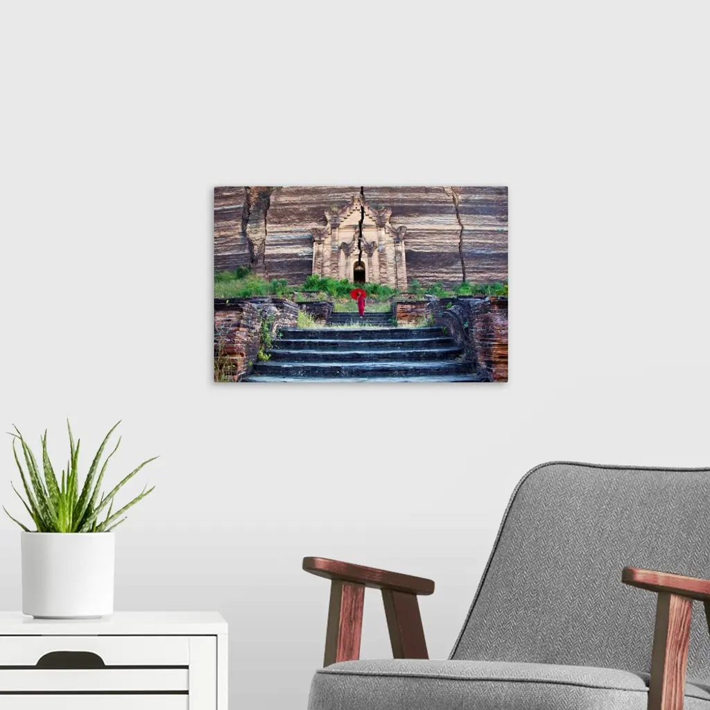 Monk with parasol walking at Mingun Pagoda, Mandalay,Burma wall art for home and office decor. Discover canvas art prints, photos, mural, big canvas art and framed wall art in GreatBigCanvas.com's varied collections.