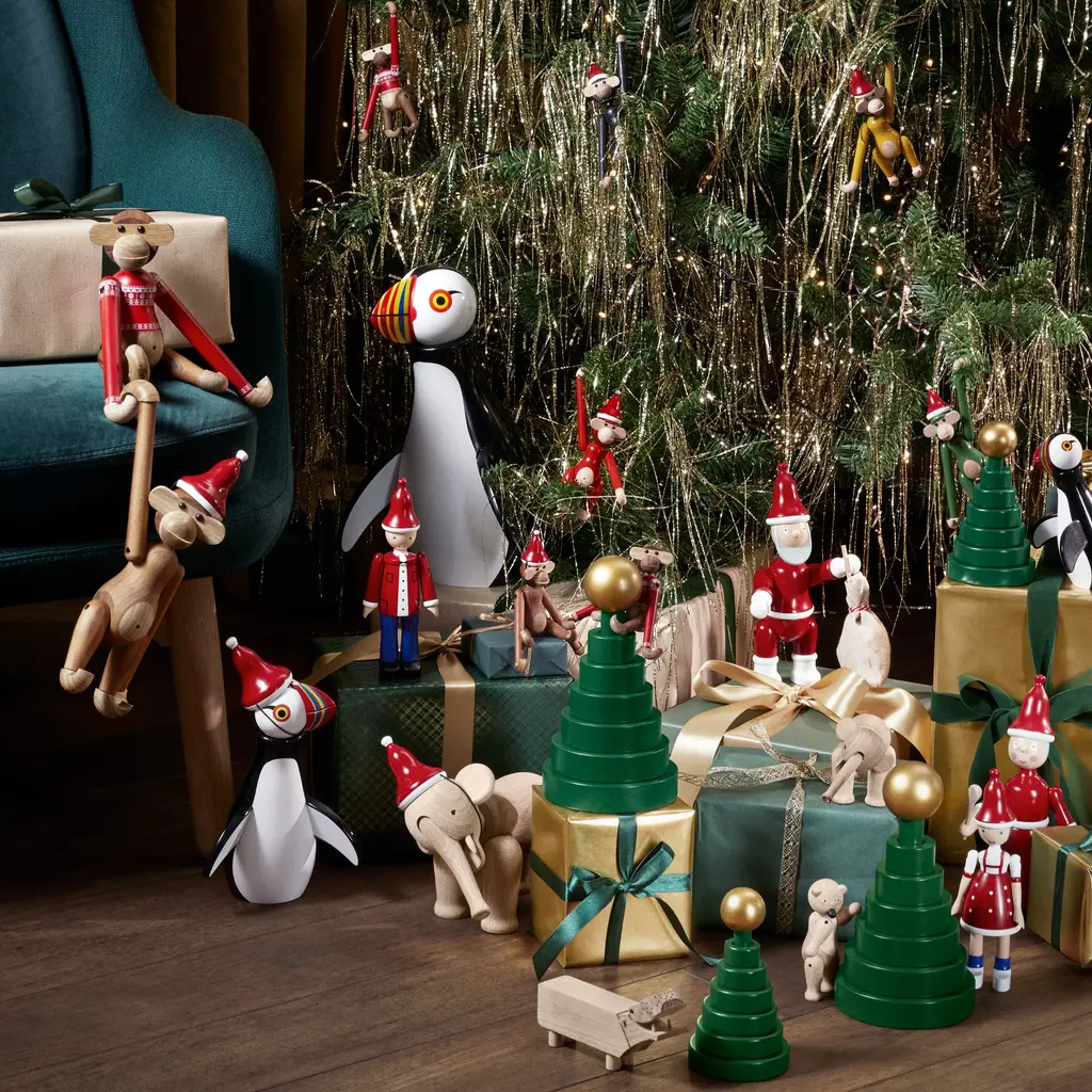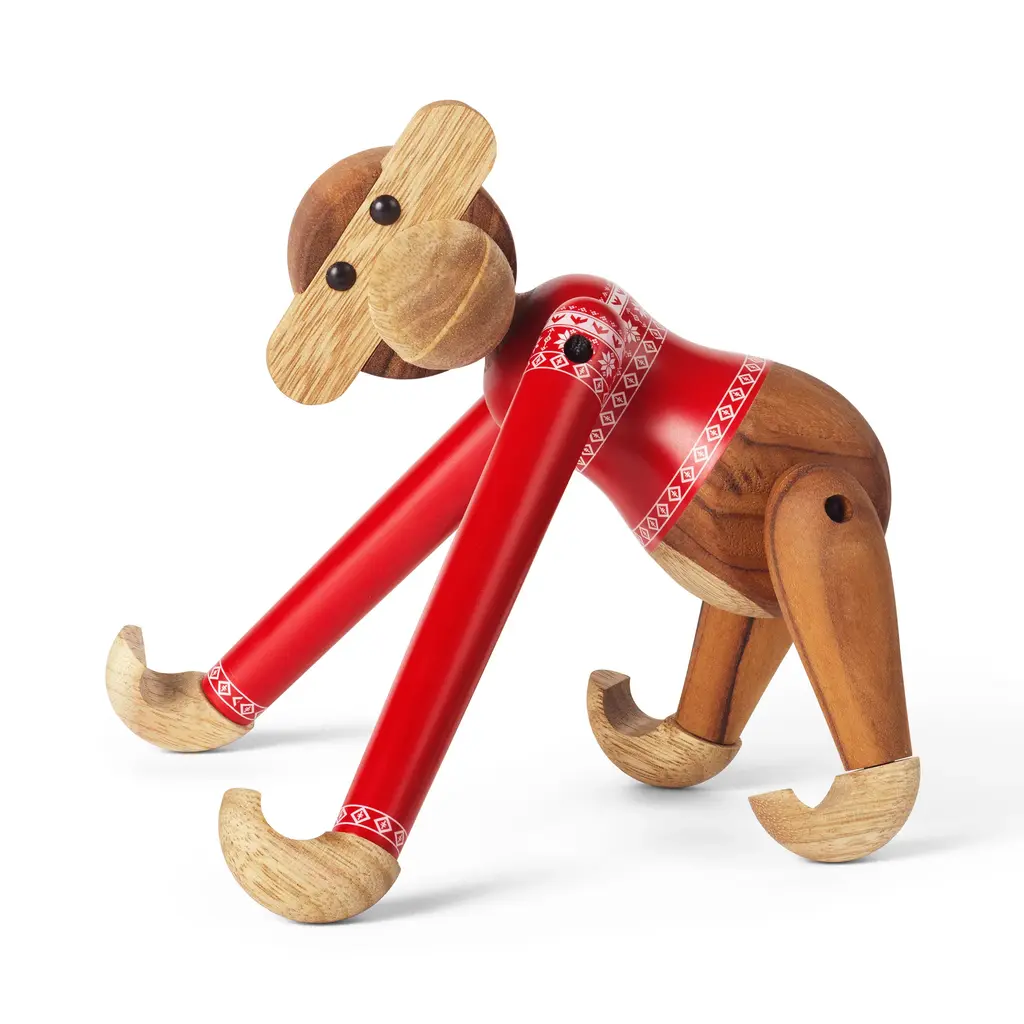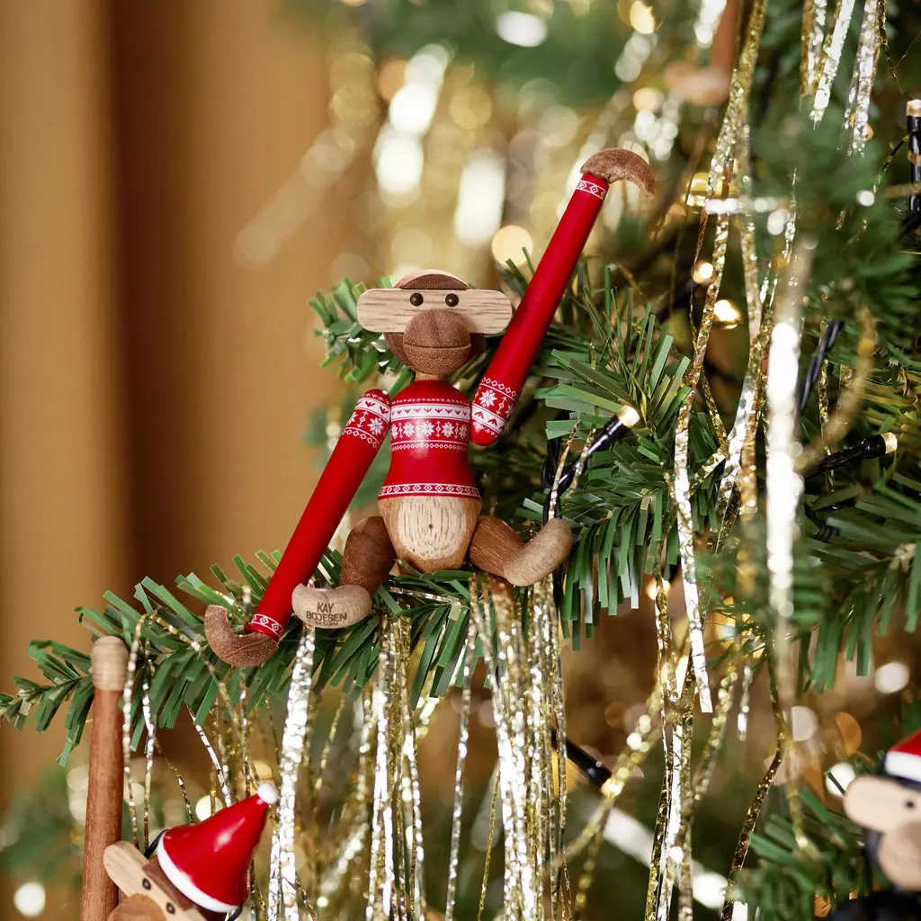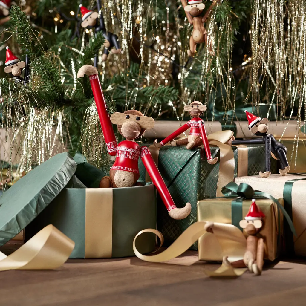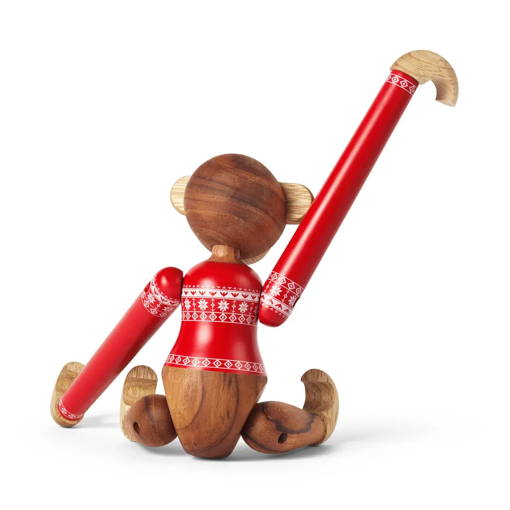 Dressed for the season, the iconic Kay Bojesen Monkey with Christmas Sweater gets a festive update in this special Christmas edition. This beloved Danish design icon, with its ever-smiling face and playful personality, is ready for the holidays in a classic red Christmas sweater. The sweater is beautifully detailed with a traditional pattern of white snowflakes and stars. It’s a vibrant and stylish element for any modern Christmas interior. Highlights: