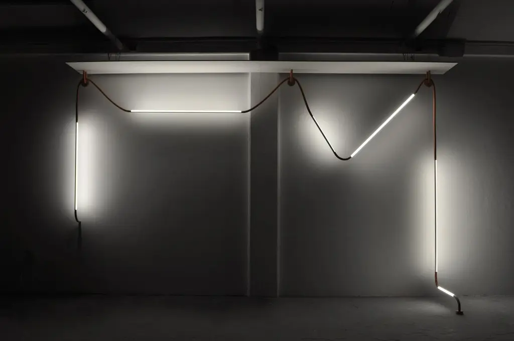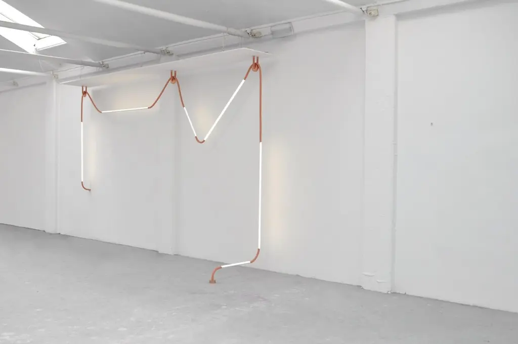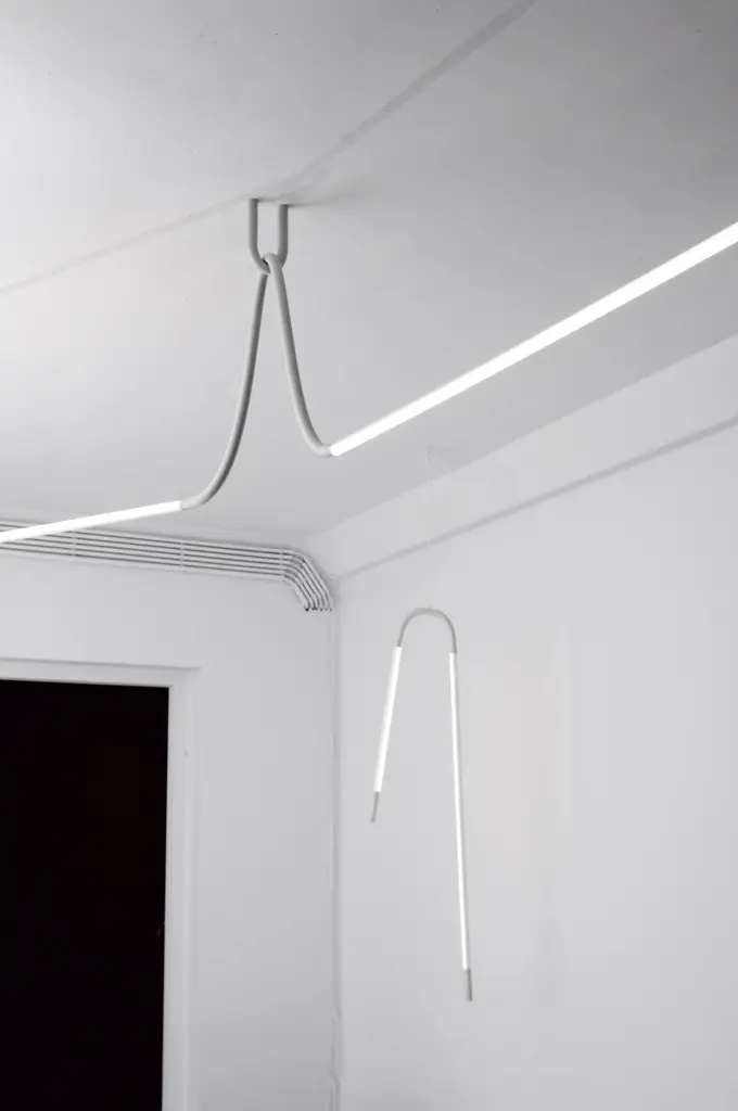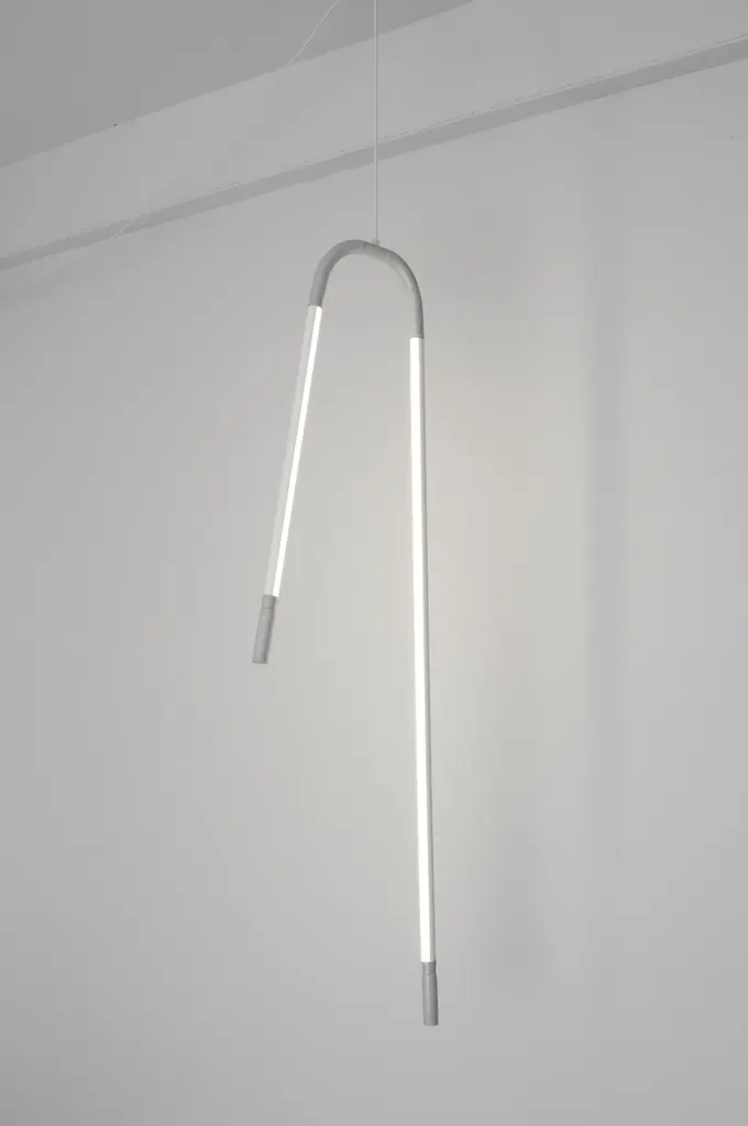 Mono lights by OS and OOSPrice for two fixturesMade on bespoke.Edition: On BespokeDimensions: 120 x 45 x 174 cmMaterials: Silicone foam tubing, led-tl’s, aluminiumCopper edition availableColours: light grey ral 7047, dark grey ral 7012, beige red ral 3012other ral colors availableColour temperature of lighting:830 lumens, 3000 K, warm white840 lumens, 4000 K, neutral white865 lumens, 6500 K, daylight whiteVoltage: 230 V, 110 V possible with transformerInstallations are made on bespoke.We would need to receive the dimensions of the space, possibly supplemented by photographs. Based on these measurements and the wishes of the client we make a visualization. This composition is discussed and may be adjusted. After approval, the installation is made in the workshop of OS ? OOS.With ever increasing demands for products to become lighter, faster, smaller, more intuitive and interface with us as human beings, materials are having to become more multifunctional, being able to perform more than one task.Mono-lights by OS ? OOS takes on this task and presents a methodology where one material combines multi-functionality with a clear monolithic aesthetic. The Mono-lights are an extension of the unibody fluorescent tubes, updated with the latest technology in the field of LED lighting. The structural elements have become an extension of the tubes themselves, with the added function of being completely flexible; yielding themselves to the possibilities of being bent and contorted to fix into any situation.From the beginning OS ? OOS have been facinated with the play of light and the manipulation there of. These works have brought this fascination to a new scale, creating objects whose intention is to combine elements that interact with their immediate surroundings.
