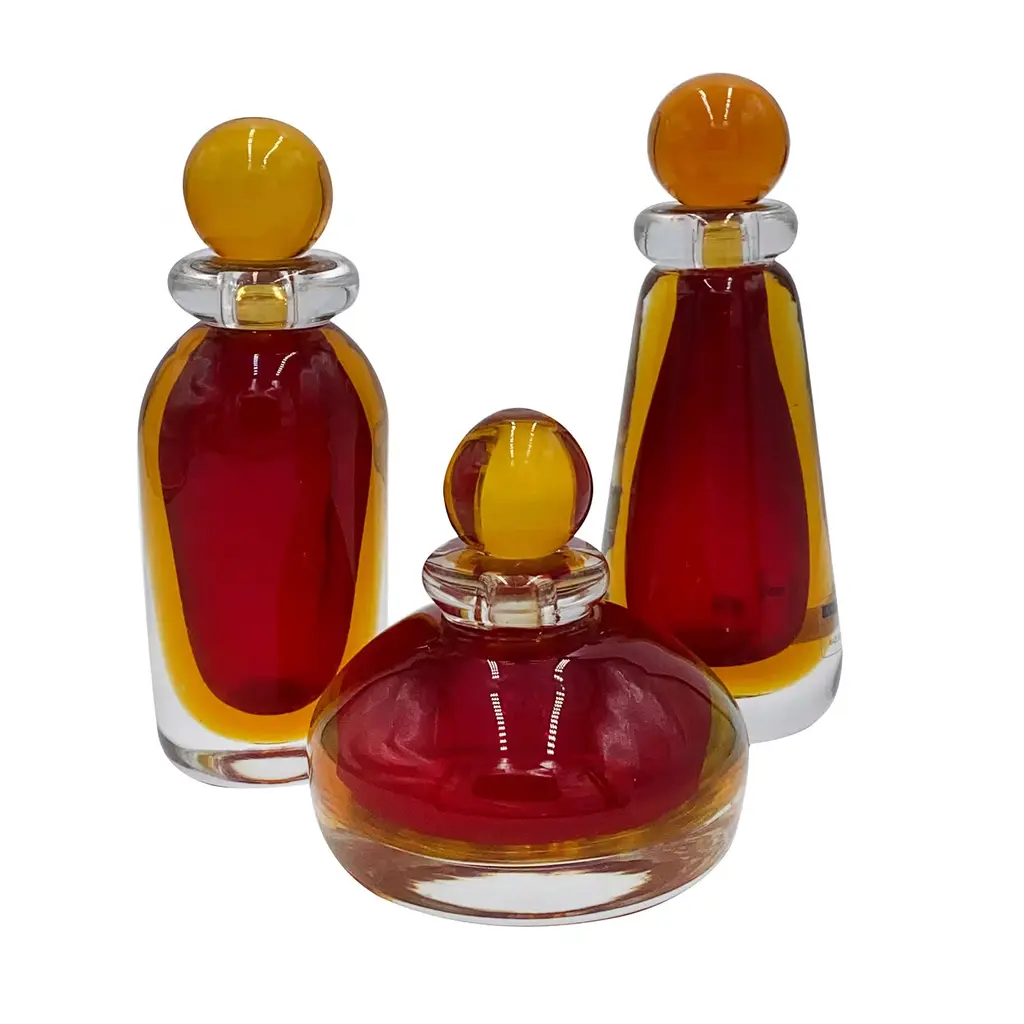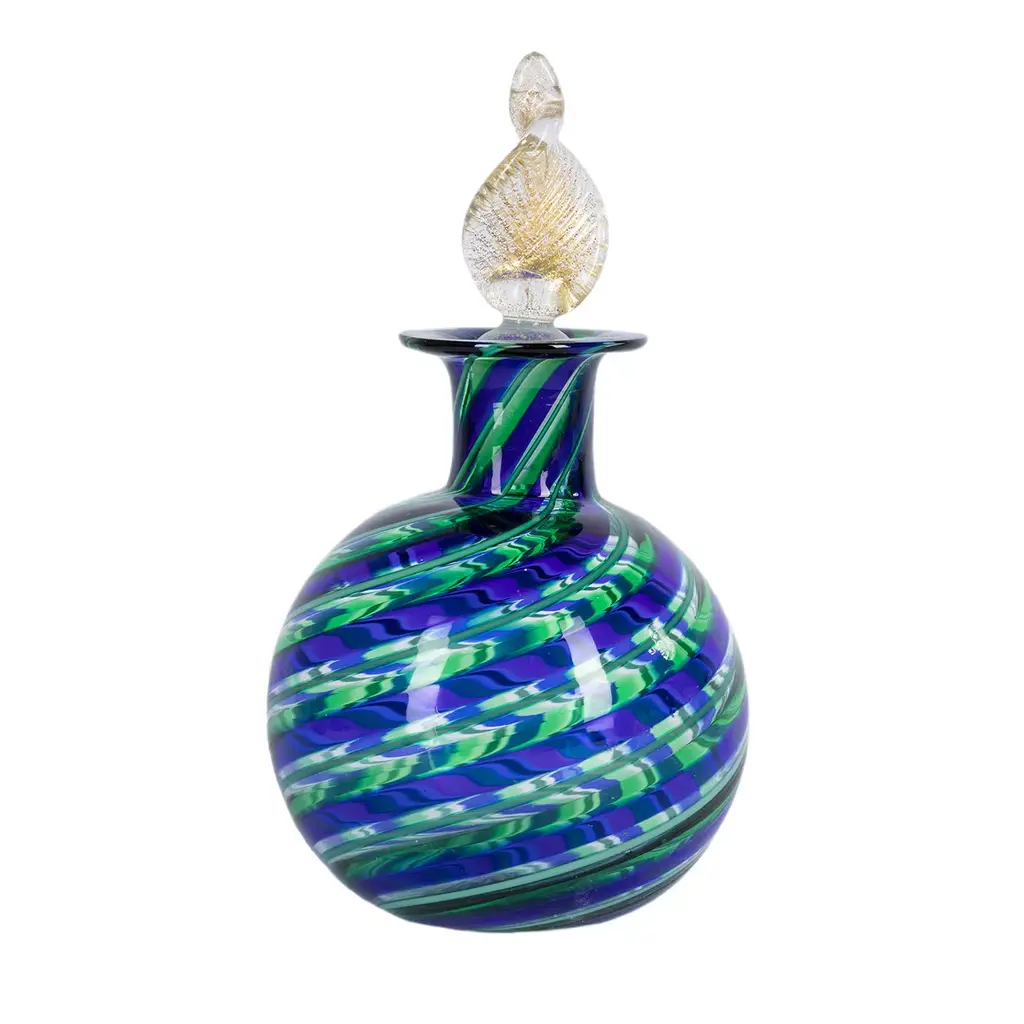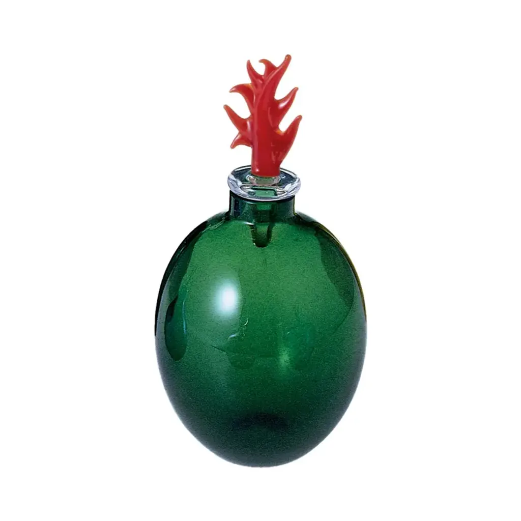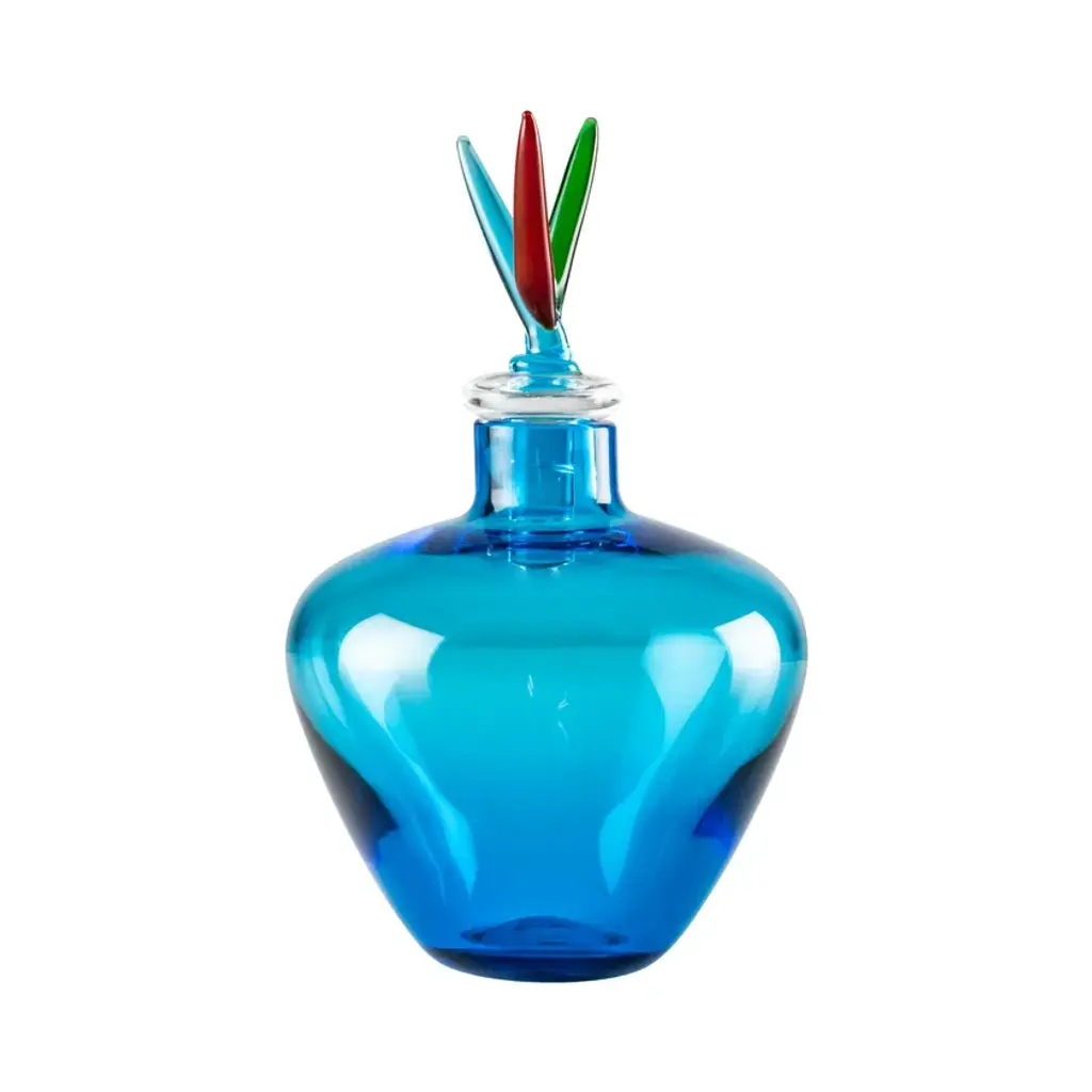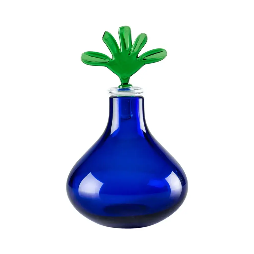 Monofiore is a blown glass cruet with decorative cap. Different shapes, different colours. But all bursting with energy. Their caps recall the shapes and patterns of nature. Every Monofiore by Laura De Santillana is unique: a small precious gift for your loved ones.Small vials, like ancient treasures that have been discovered in unknown places. Perhaps in the room of a refined woman from the past, a lover of beauty and fragrance. These blown glass ampoules with caps have the delicacy of personal belongings, with details that appear like curious florets blooming upward.Models:Cod. 100.40 - AcquamarineCod.100.41 - SapphireCod.100.42 - AmethystCod.100.43 - GreenCod. 100.44 - Apple greenCod. 100.45 - Tea