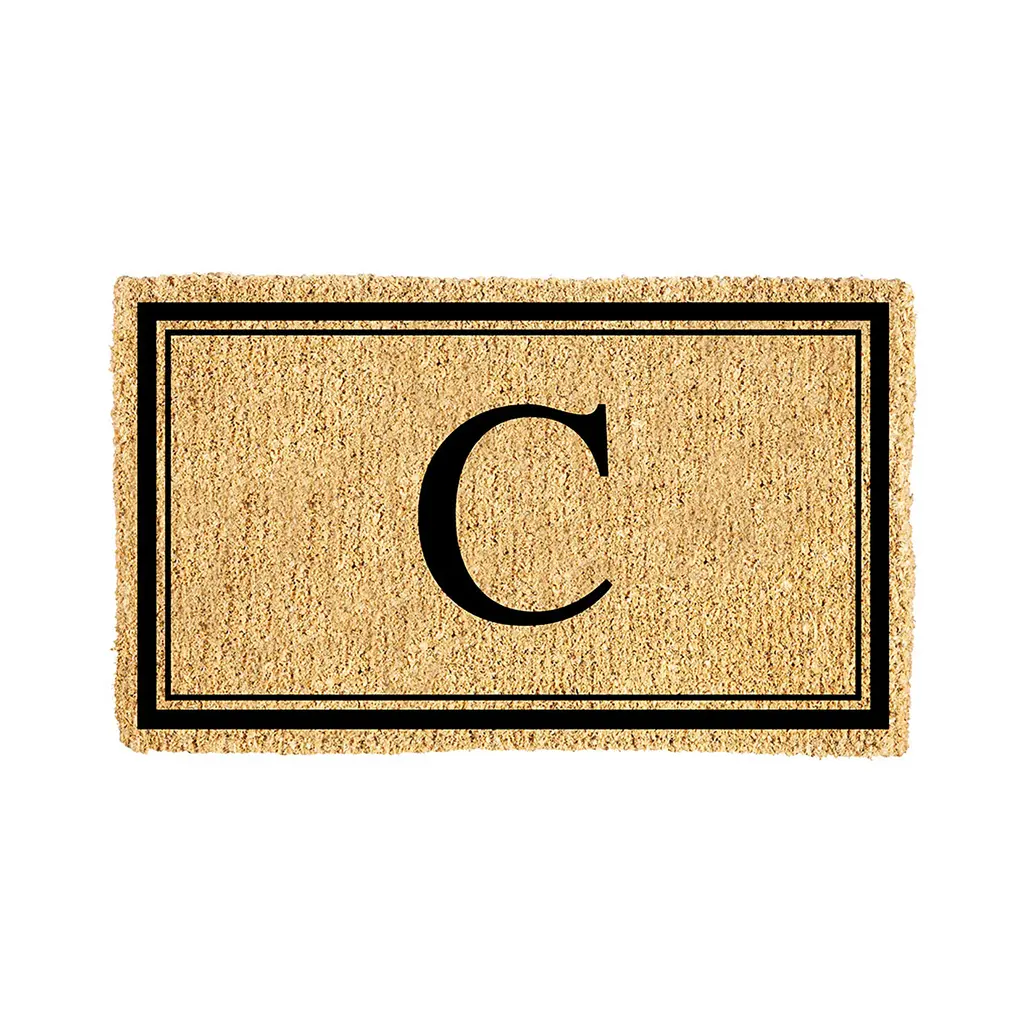 Step into style when you accent your porch with this Monogram Coir Mat. It features a single letter that can represent your surname, first name, or anything else you want. Crafted from coco husk fiber, the eye-catching mat is natural and eco-friendly. Ideal for high-traffic areas, the mat traps dirt and debris to prevent messes from being tracked into homes. Designs are printed directly on the mats with fade-resistant dyes. Since the mat is crafted from natural coir, some shedding is to be expected. Shake off excess fibers or use a soft brush to gently sweep.