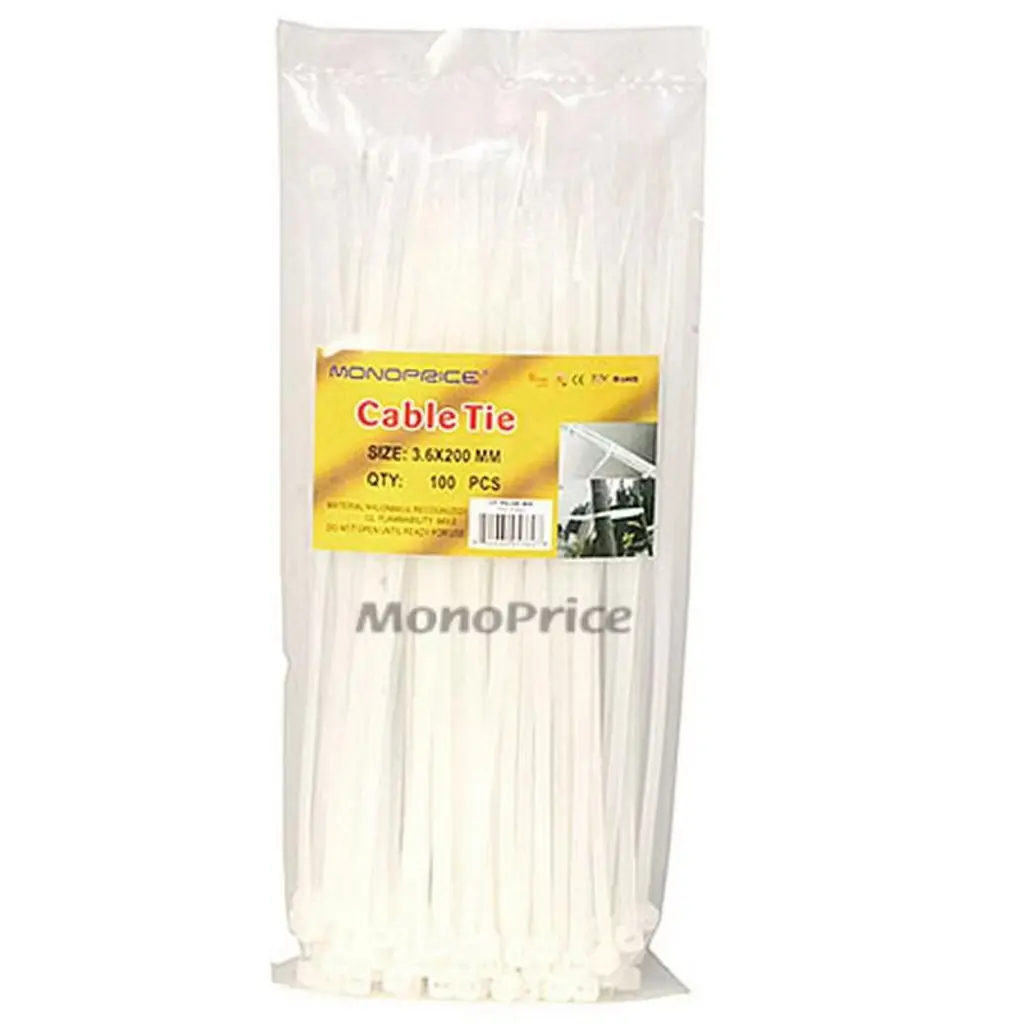 Monoprice Cable Tie 8 Inches 40 Lbs, 100 Pcs/pack, White