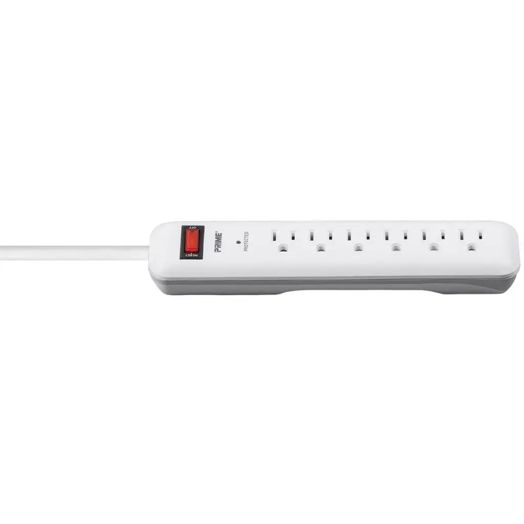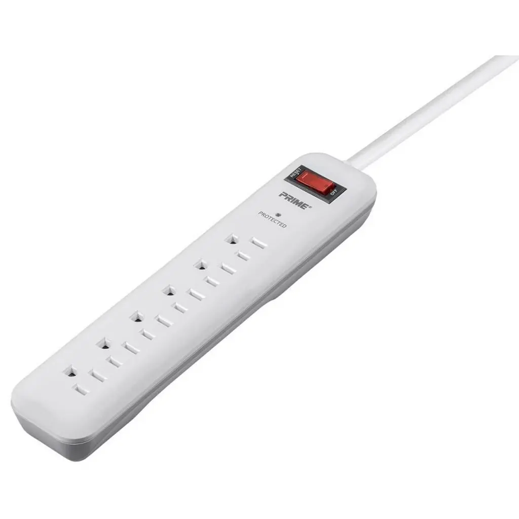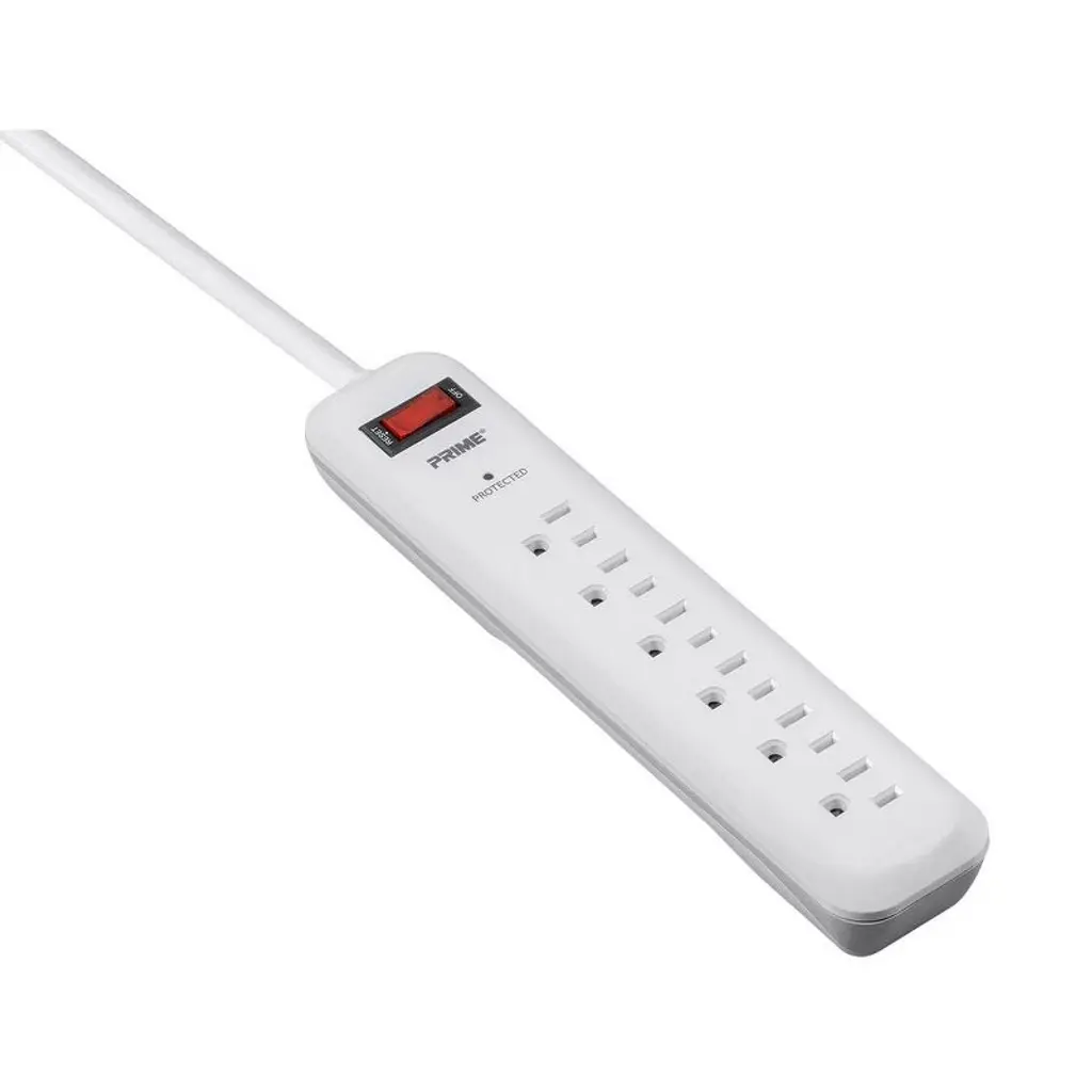 This 6-Outlet Surge Protector features 1000 joules of protection, an 8ft extra-long cord, and a low-profile plug for space-saving convenience. Ideal for small appliances and tools, it includes auto shutoff during severe surges, sliding safety covers, a lighted on/off switch with built-in circuit breaker, and a red LED to indicate active protection.