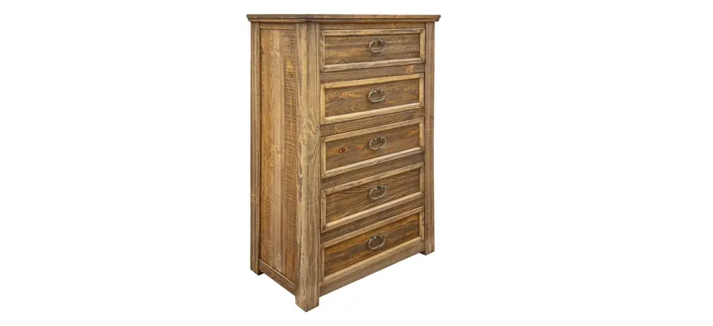 Warm up your bedroom's style with this rustic Montana Nightstand. It features the beauty of solid wood, paneled drawer fronts, and curved metal hardware. Plus, you'll love its warm finish, as well as all of the storage space it provides.
