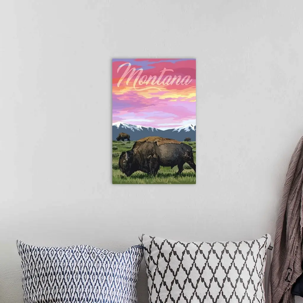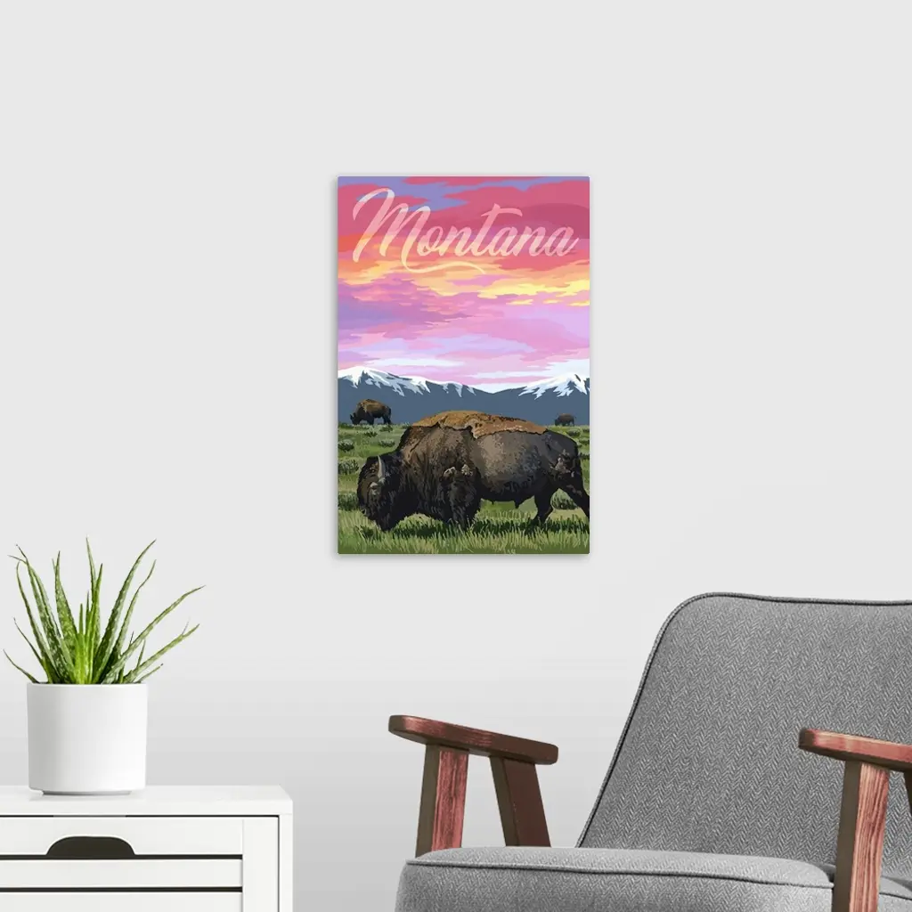 Montana - Bison & Sunset - Large Script wall art for home and office decor. Discover canvas art prints, photos, mural, big canvas art and framed wall art in GreatBigCanvas.com's varied collections.