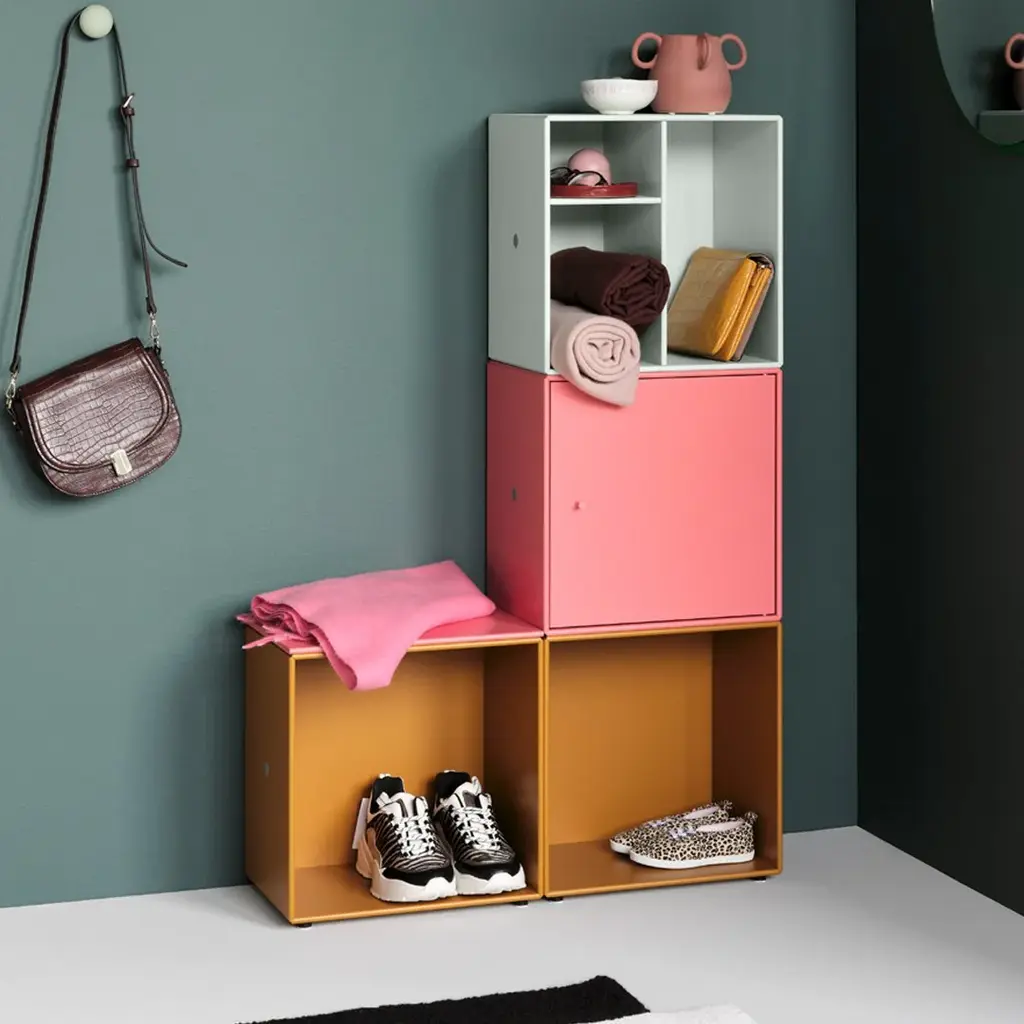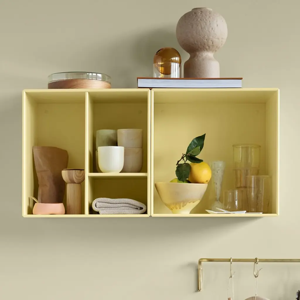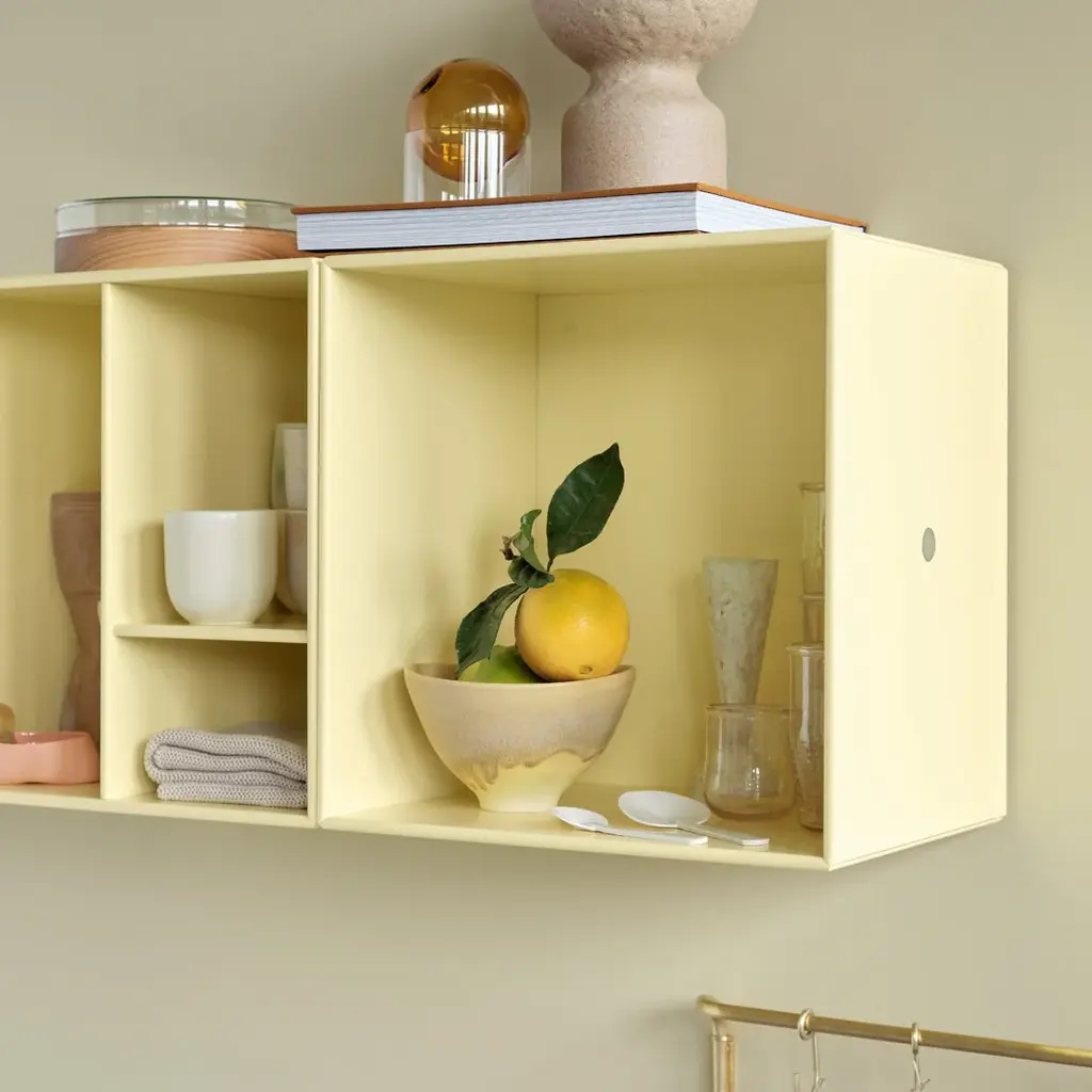 The open Montana Mini module is a part of the new series Montana Mini, which is made from the well-known Montana MDF, but with a thickness of only 8 millimetres. The Montana Mini is a series of uncomplicated, versatile storage elements available in three variants making them the easier choice. The open Montana Mini module creates the perfect frame for your personal style. With a thickness of just 8 millimetres the Montana Mini appears lighter than the Montana System, which measures 12 millimetres. Embedded in the modules are two round magnets with a matt, chrome finish, which are visible on either side of the module. The magnet is both a design detail that is unique to Montana Mini and a functional feature helping the Mini modules align side by side. The series is available in 10 selected colours from the Montana colour palette.
