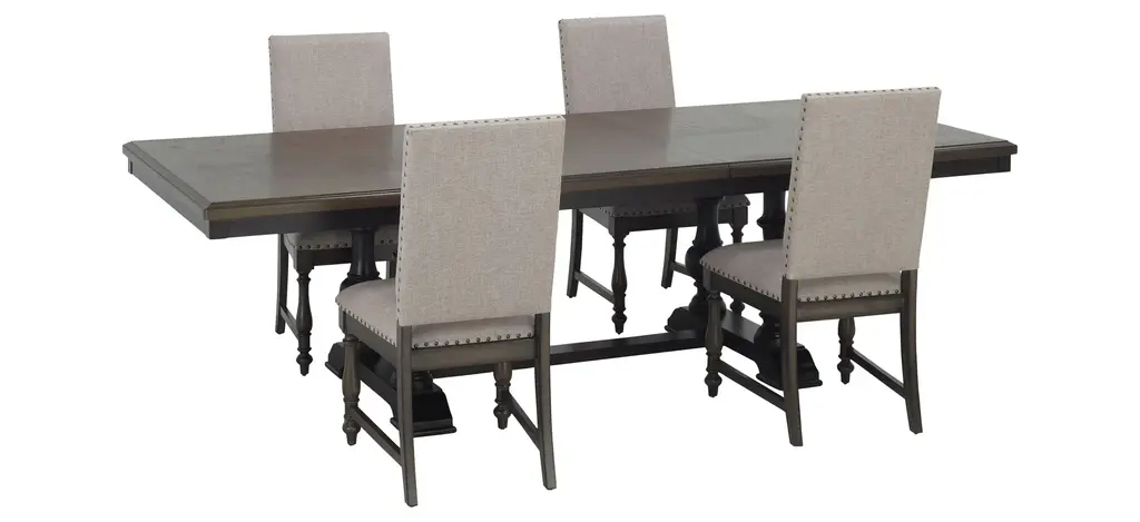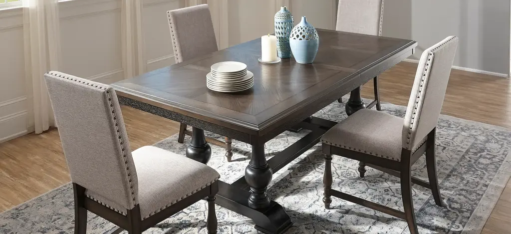 There's nothing like quality time spent with family and friends, and there's no set like the Montane 5-pc. dining set to do it. This collection is all about classic comfort with warm wood tones and upholstered chairs. Plus, a 22-inch leaf gives you and guests plenty of elbow room. Matching Table Protector