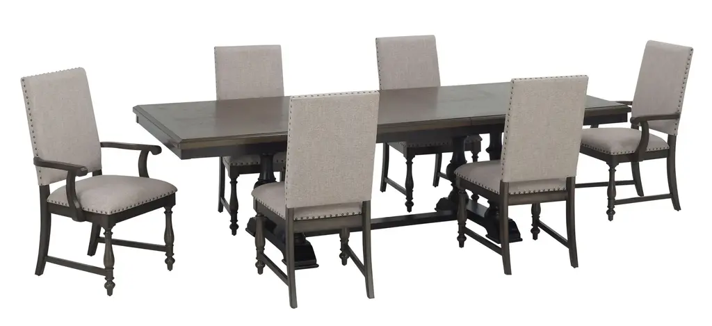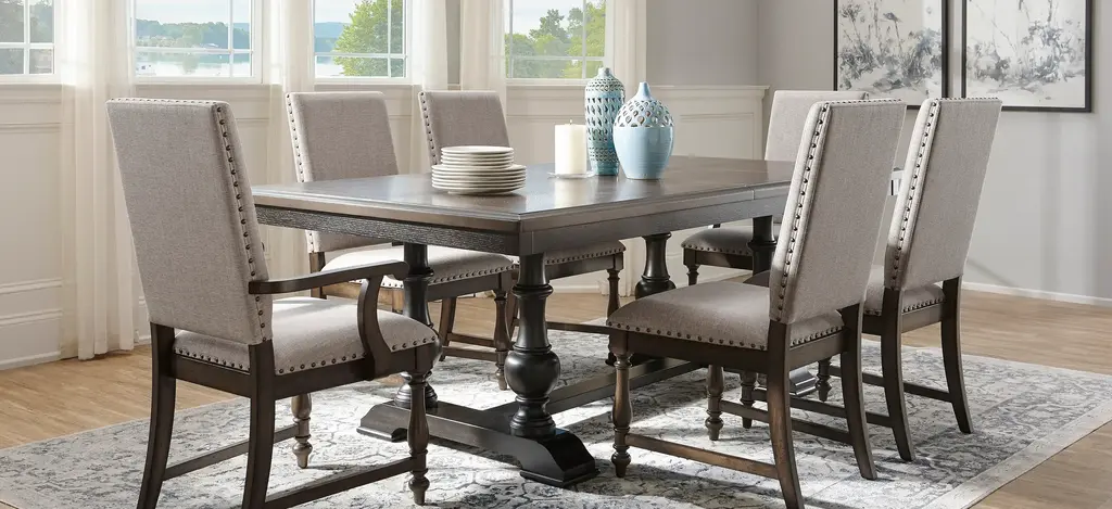 There's nothing like quality time spent with family and friends, and there's no set like the Montane 7-pc. dining set to do it. This collection is all about classic comfort with warm wood tones and upholstered chairs. Plus, a 22-inch leaf gives you and guests plenty of elbow room. Matching Table Protector