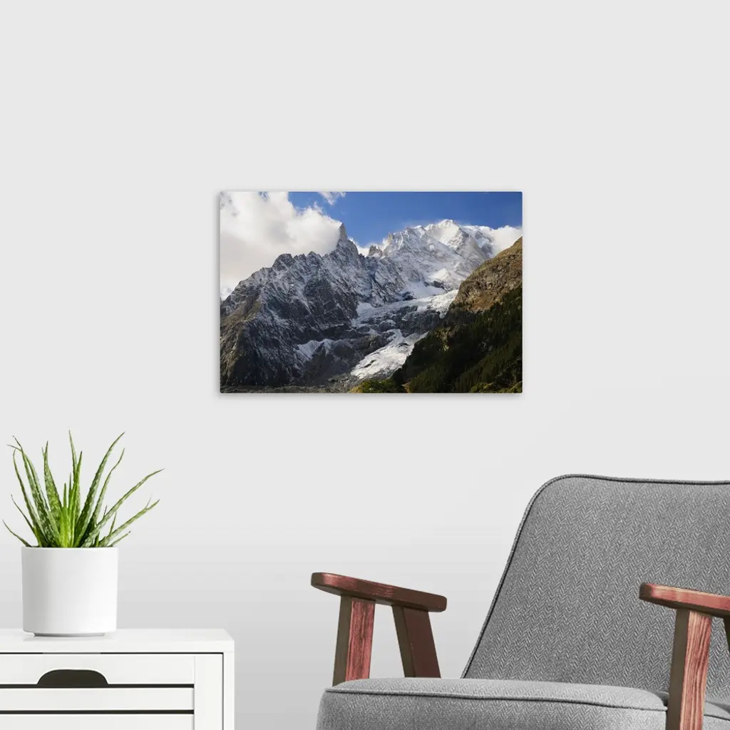 Monte Bianco (Mont Blanc) seen from Vallee d'Aosta, Suedtirol, Italy, Europe wall art for home and office decor. Discover canvas art prints, photos, mural, big canvas art and framed wall art in GreatBigCanvas.com's varied collections.