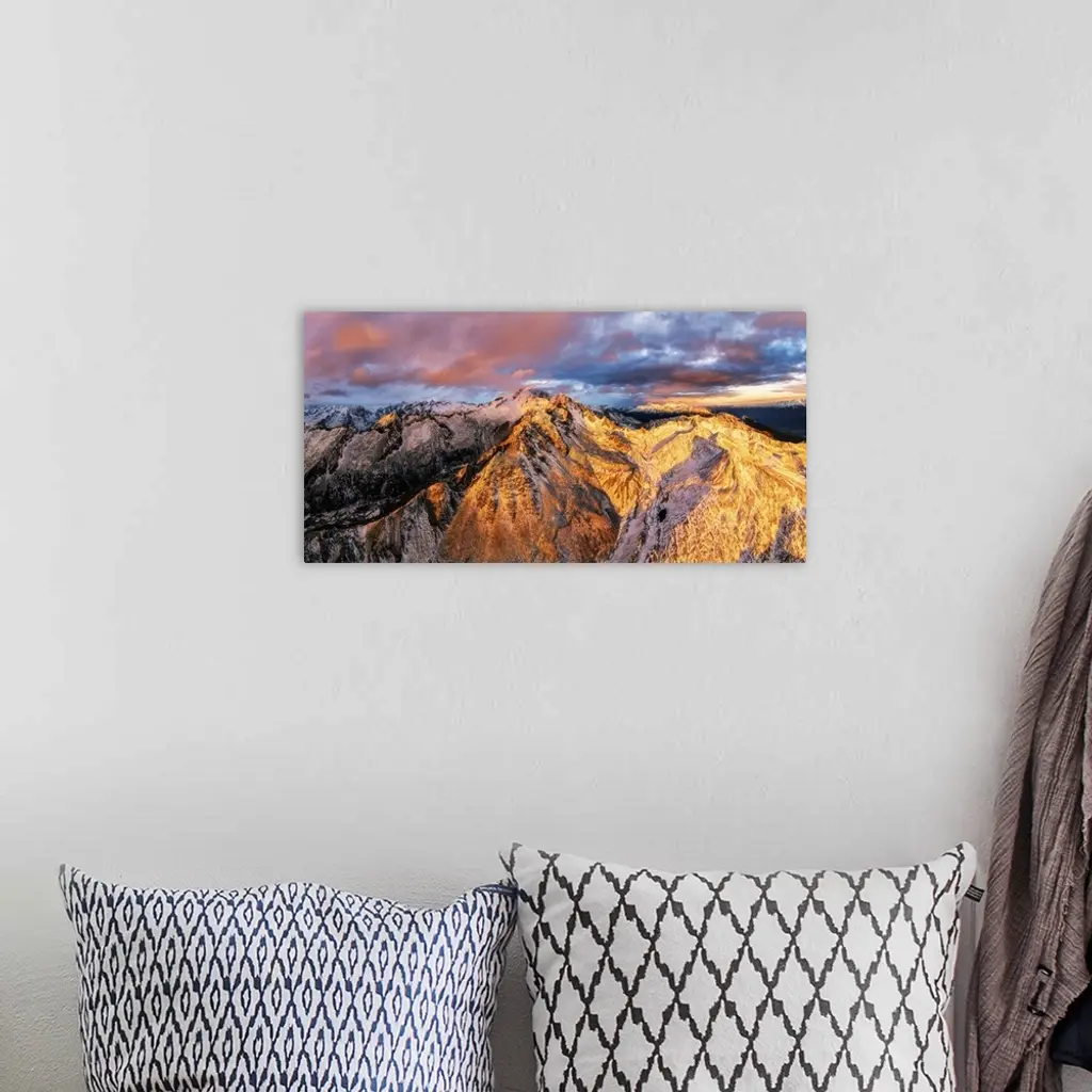Rhaetian Alps, Monte Disgrazia and Valmasino covered with snow in autumn, Lombardy, Italy