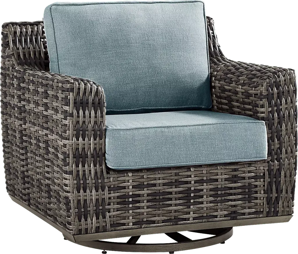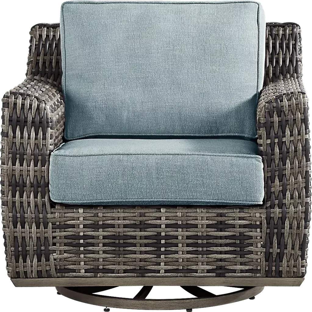 Montecello Gray 5 Pc Outdoor Swivel Chat Set With Azure Cushions