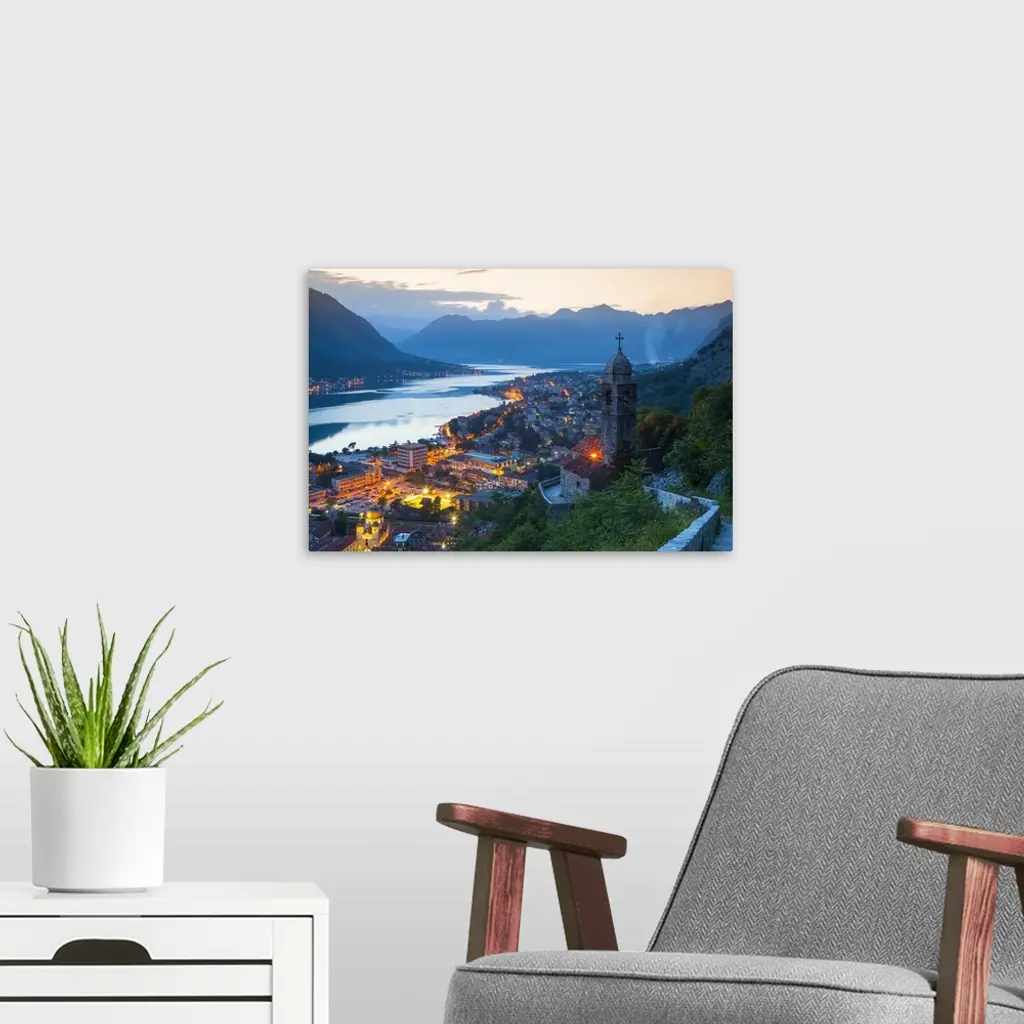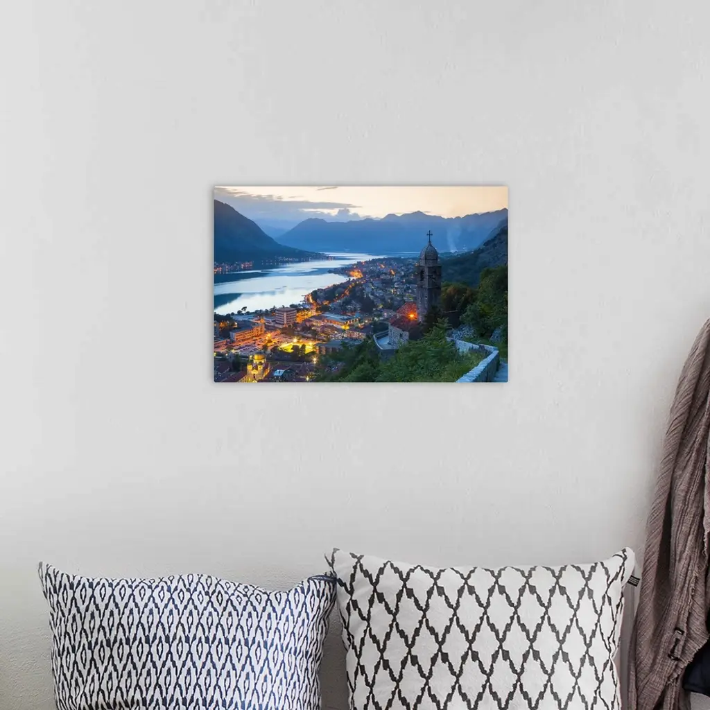 Montenegro, Kotor Bay, Stari Grad And The Bay Of Kotor Illuminated At Dusk
