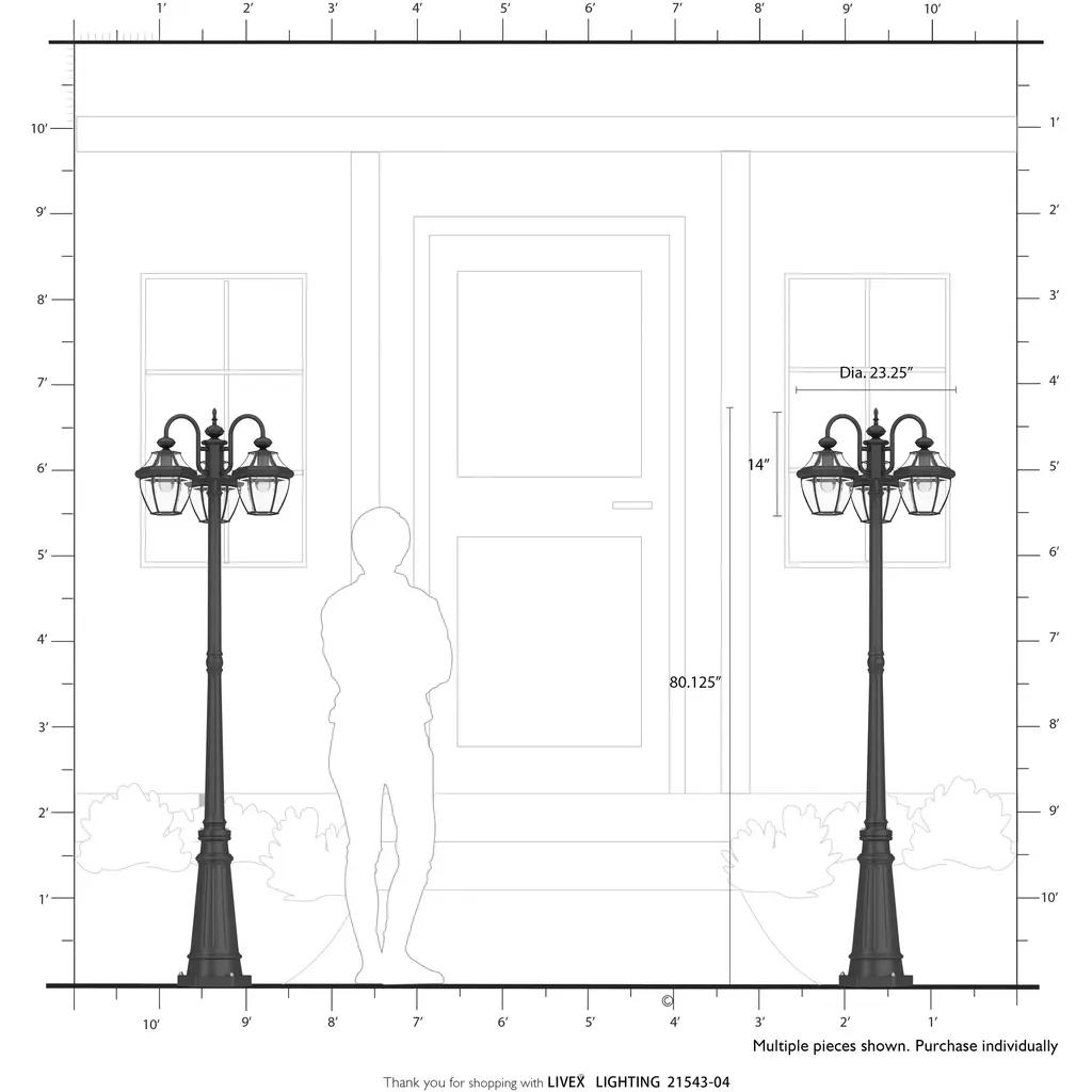 Monterey 3 Light 80.13 Inch Black Outdoor 3 Head Post Light