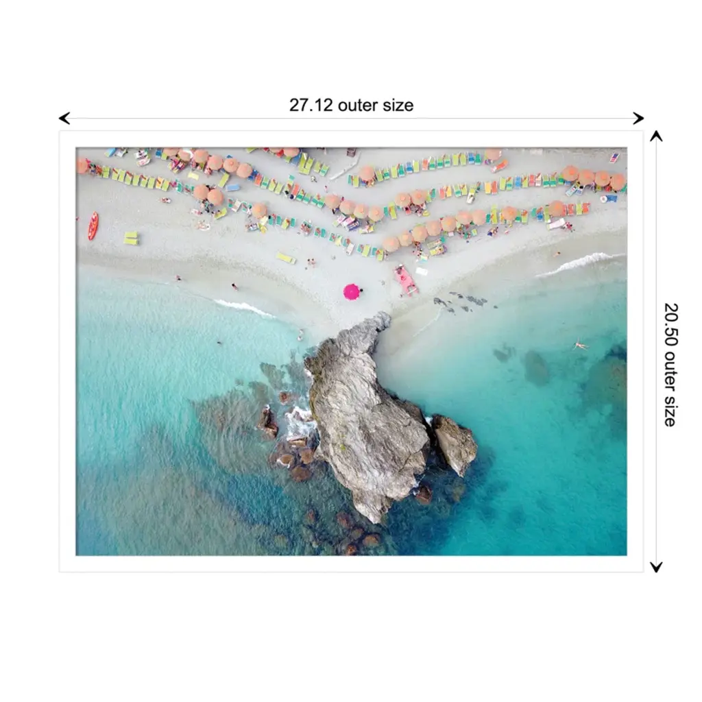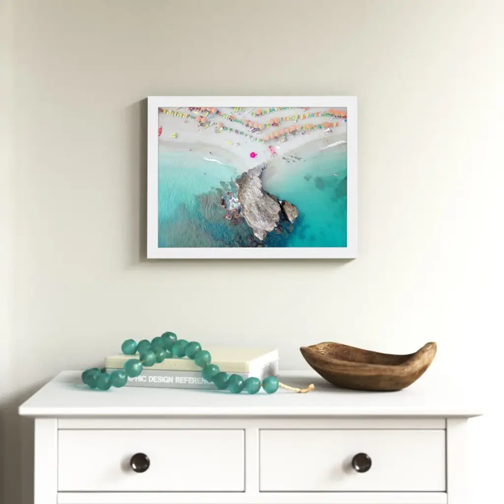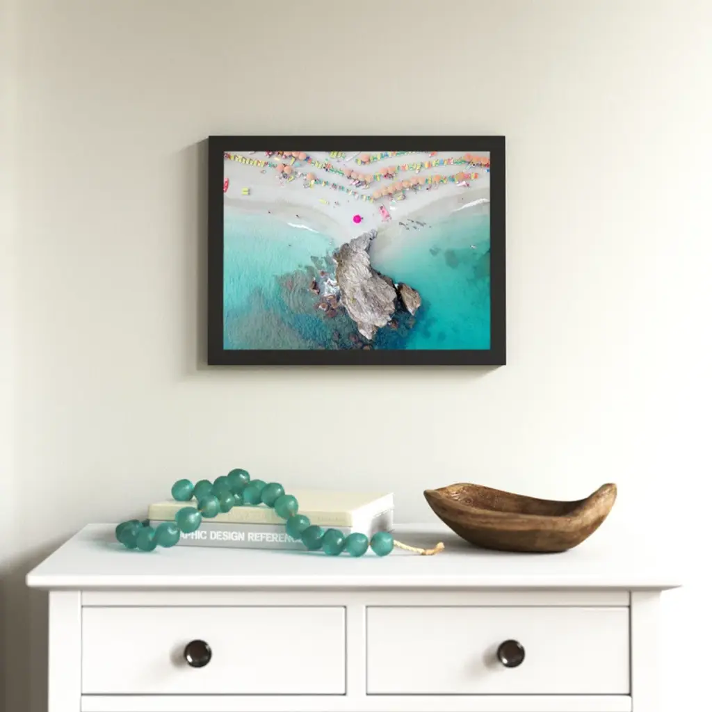 "Coastal Bliss!" this wall art injects a dose of summer into any room. With a lively display of vibrant umbrellas along a serene coastline, you're transported to your favorite beachside paradise. This masterpiece, crafted by designer and photographer Rachel Dowd, adds a splash of color and joy to any room. Whether it's your living room, bedroom, or kitchen, the joy of the beach is just a glance away. Plus, it's framed using traditional custom techniques for a polished and professional look.