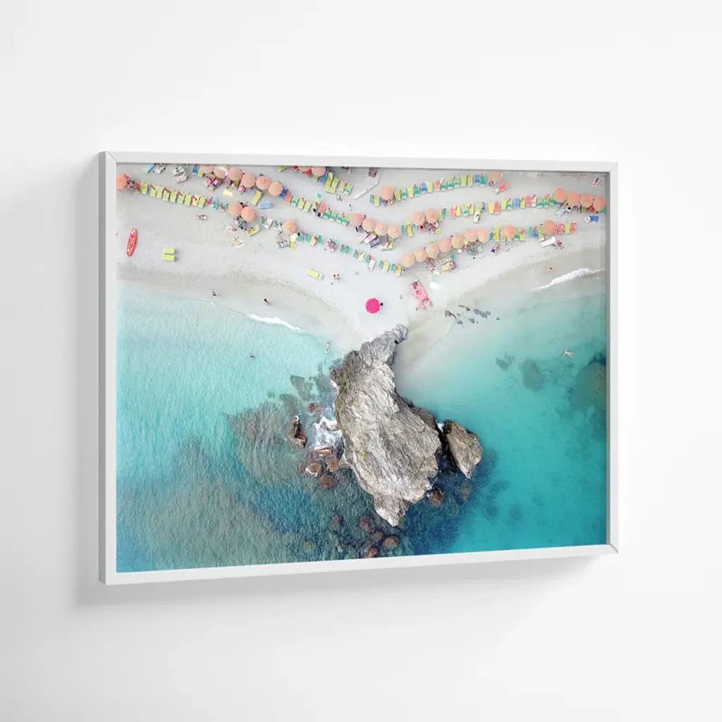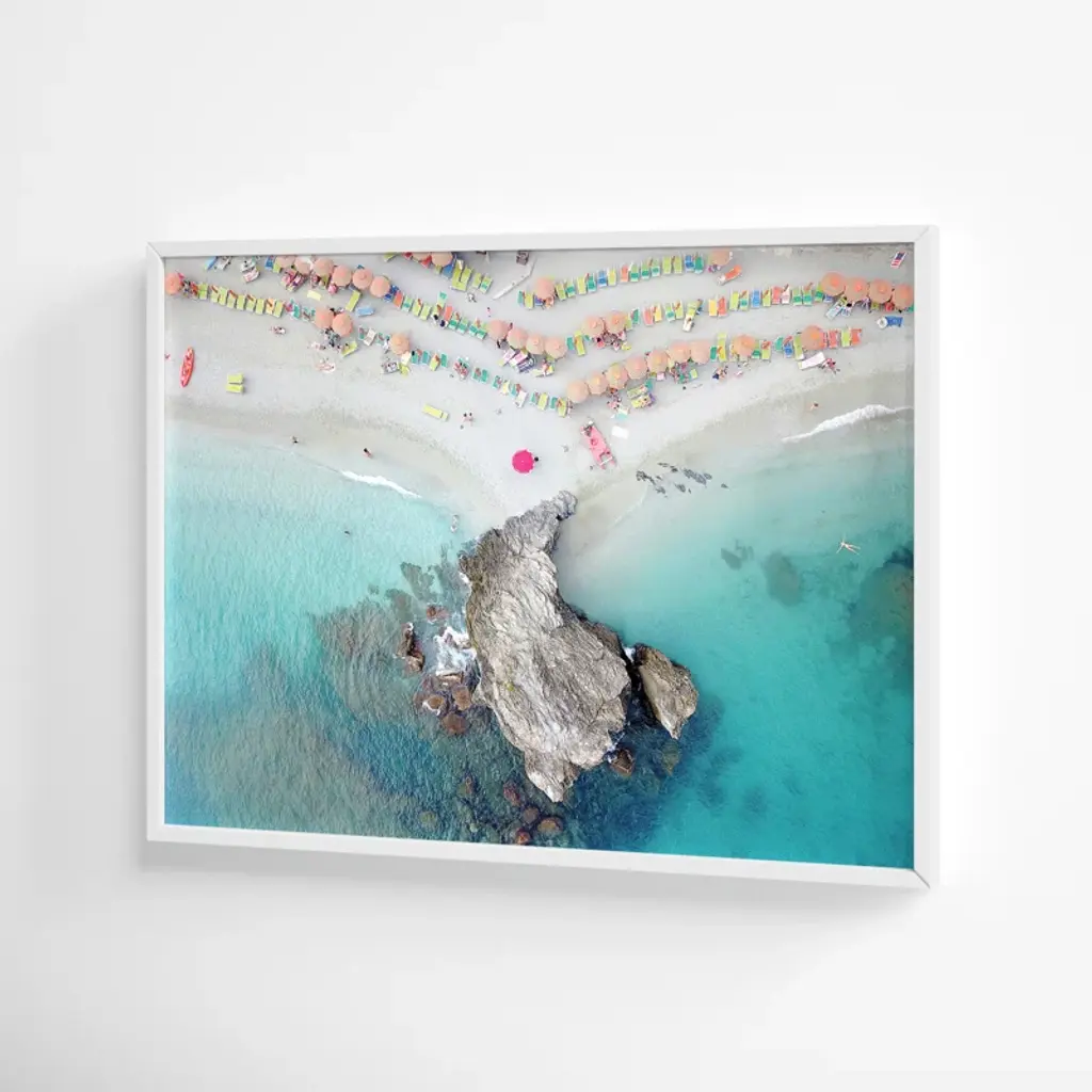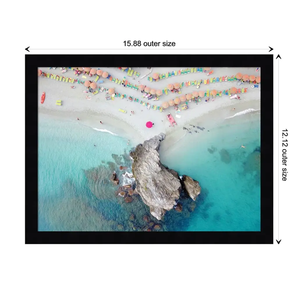 "Coastal Bliss!" this wall art injects a dose of summer into any room. With a lively display of vibrant umbrellas along a serene coastline, you're transported to your favorite beachside paradise. This masterpiece, crafted by designer and photographer Rachel Dowd, adds a splash of color and joy to any room. Whether it's your living room, bedroom, or kitchen, the joy of the beach is just a glance away. Plus, it's framed using traditional custom techniques for a polished and professional look.