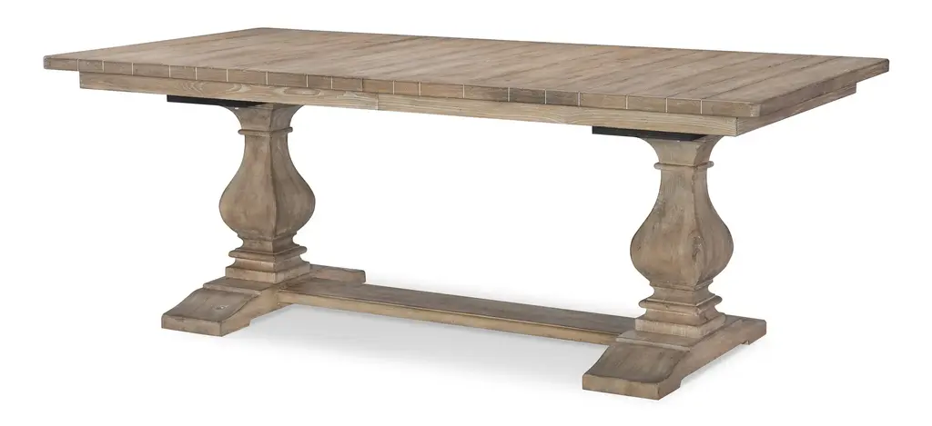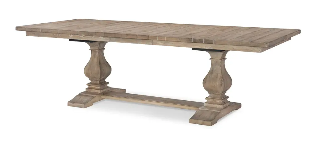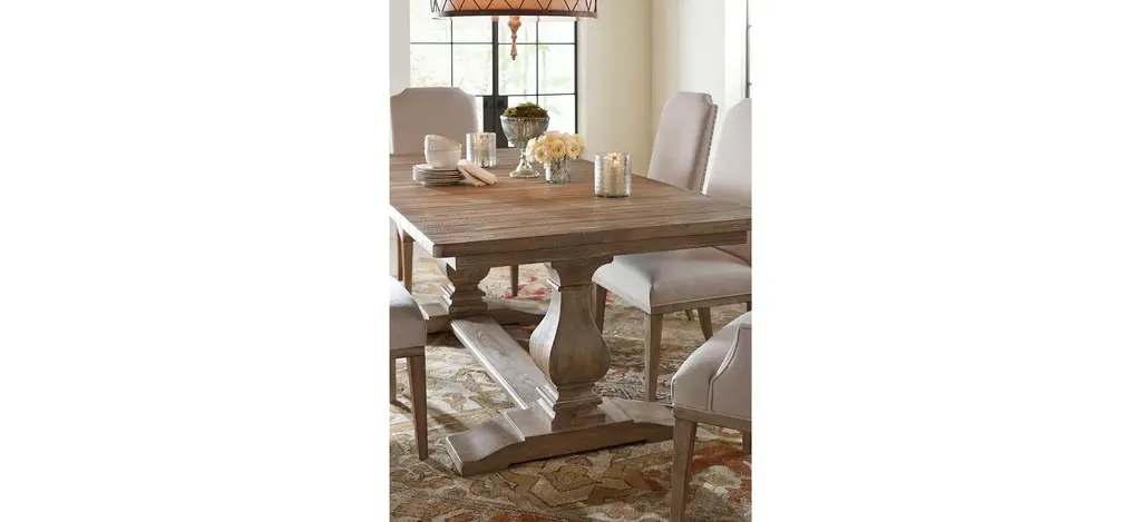 The Monteverdi By Rachael Ray Rectangular Trestle Table is the perfect rustic piece to compliment any dining room. With two 18" leaves, this table comfortably seats up to 10, making it perfect for both smaller gatherings and larger, lively dinner parties. This new addition into the Rachael Ray Home collections is based on Rachaels love of and special connection to an area in Italy, known as Monteverdi. CA CARB P2 Compliant.
