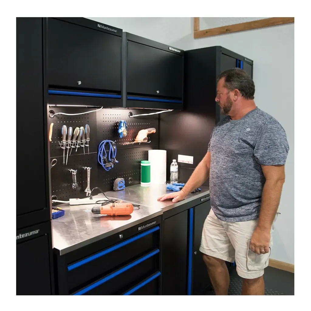 Use the pegboard back wall along with the matching posts in order to attach a base cabinet to a wall cabinet for even more frustration-free assembly. The pegboard provides a place to hang your most-used tools for easy access.This back wall is compatible with 2-door base cabinet with stainless steel worktop (BKMG30242BC) or 4-drawer base cabinet with stainless steel worktop (BKMG30244BC) and 2-Door Wall Cabinet (BKMG30202WC) or 1-door wall cabinet (BKMG30201WC)Bundle Includes:
