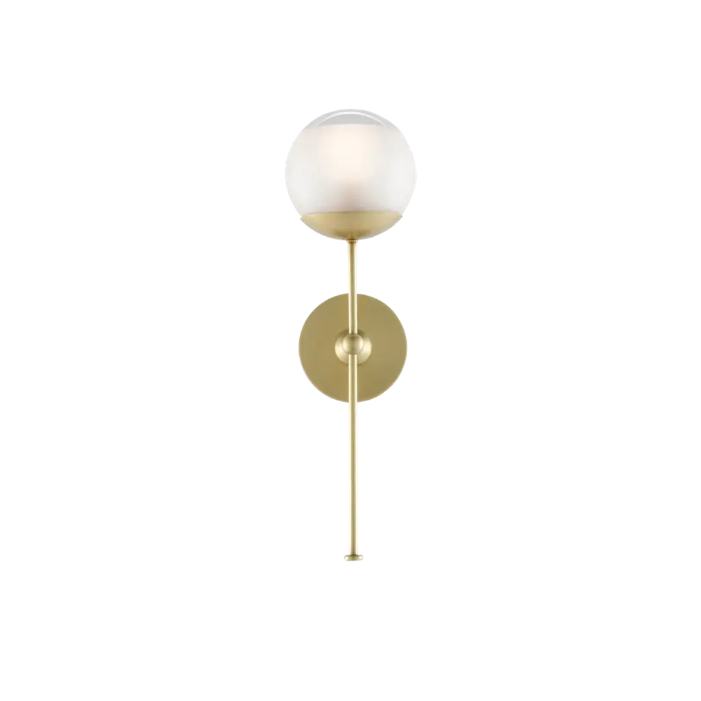 Pencil thin with a stylish trim on its opaque glass shade, the Bagno 1 - Light Armed Sconce is brimming with tailored sophistication. The gold wall sconce is made of metal, the warmth of the antiqued surfaces contrasting the crisp white glass in the shade. The sconce is certified for damp locations. Part of the Bagno collection of wall sconces designed for bathroom spaces.