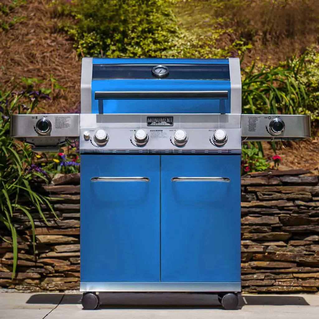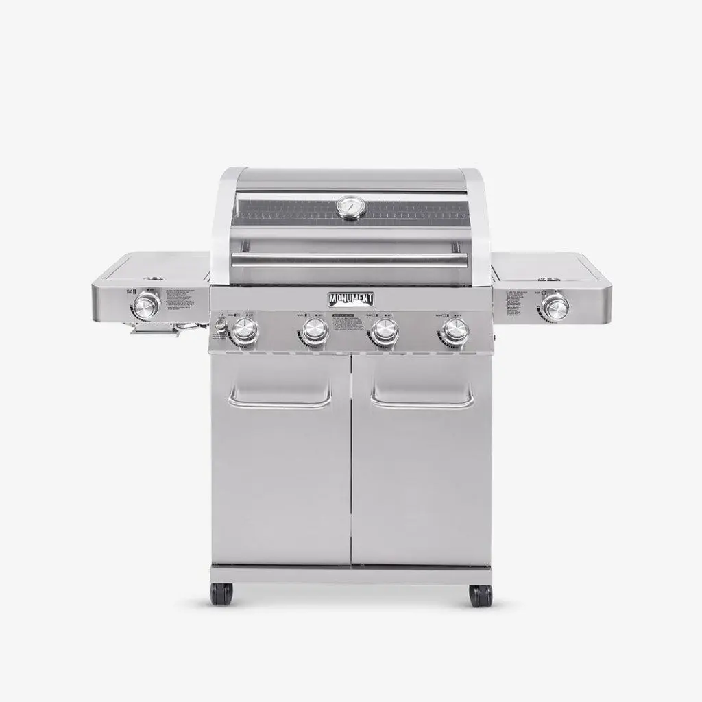 Elevate your grilling experience with the Monument Grills 4-Burner Classic Series. This grill produces 72,000 BTUs and features 723 sq. in. of total cooking space and 4 stainless steel burners. Packed with our signature clear-view glass lid, LED-backlit knobs, and a separate side sear and warming burner, this grill will have you at the top of your grilling game.