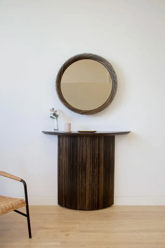 Mooda Round Mirror 36 / Oxidized Oak Wood, Clear Mirror By Indo-