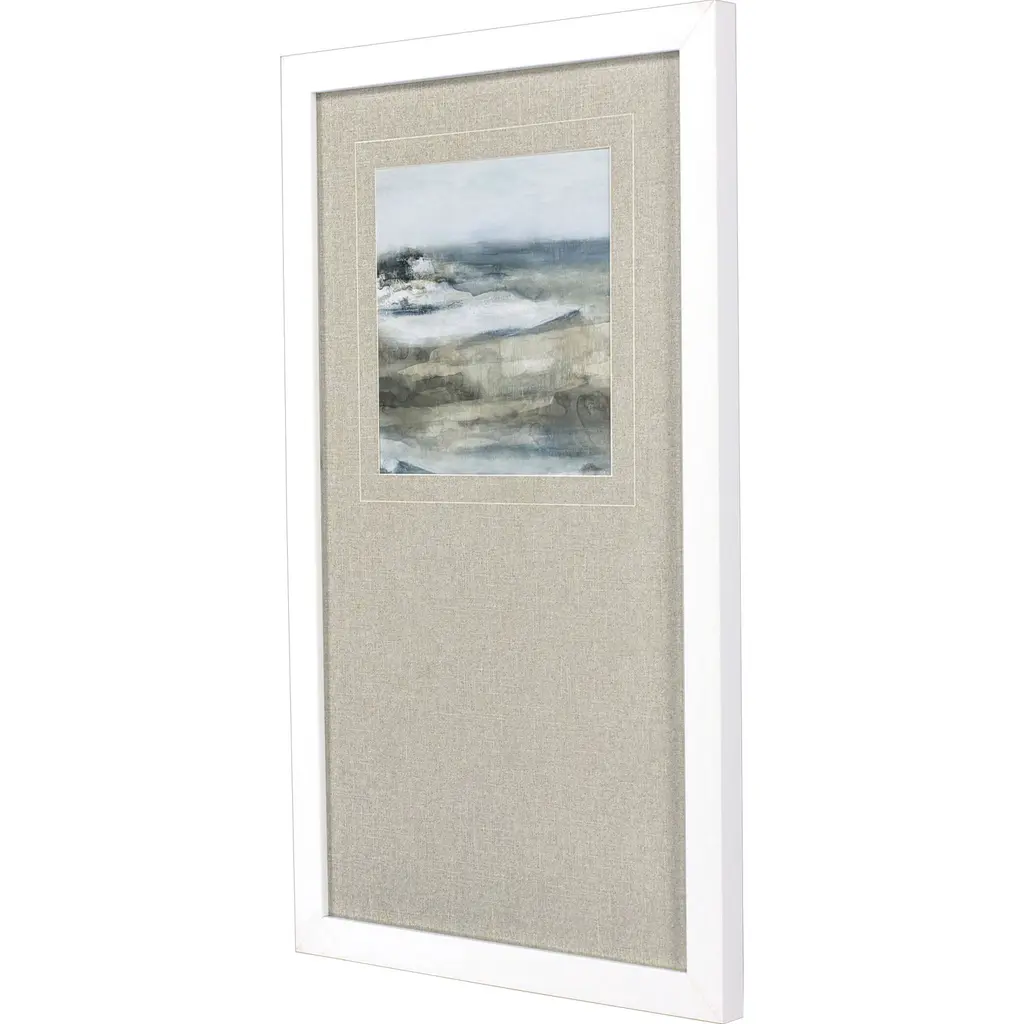 A turbulent ocean features offset premium matting with v-groove detailing. Framed in a block profile matte white finish molding.