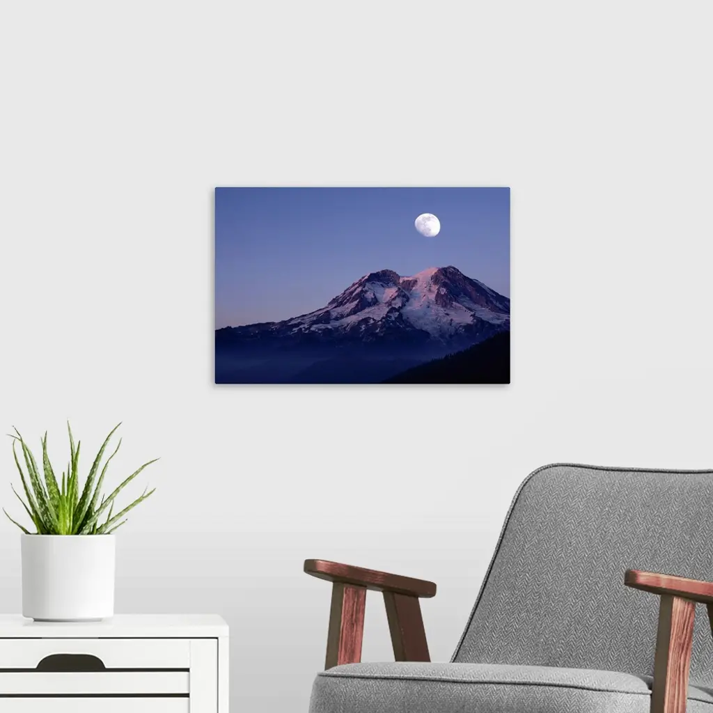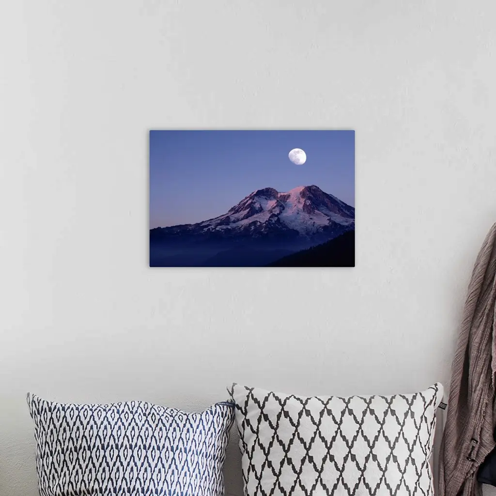 Moon Over Mount Rainier - Washington wall art for home and office decor. Discover canvas art prints, photos, mural, big canvas art and framed wall art in GreatBigCanvas.com's varied collections.