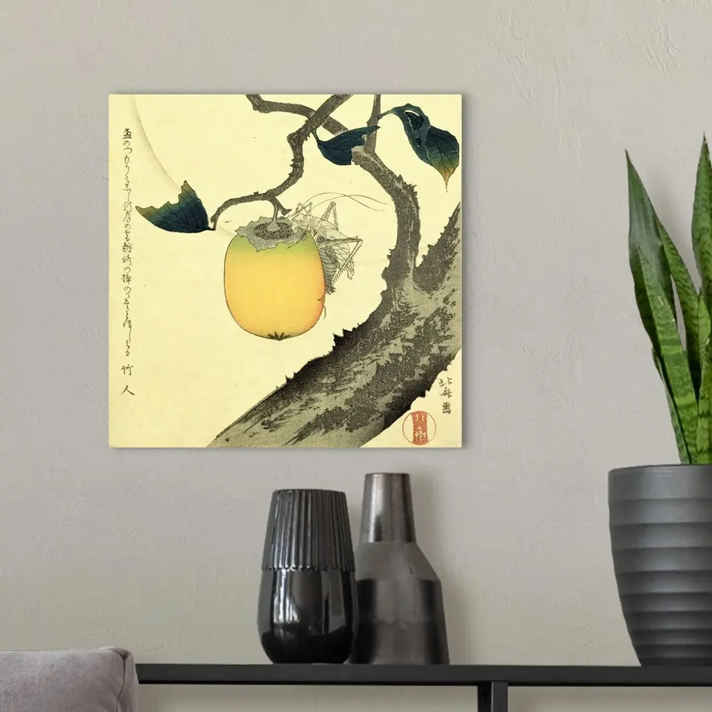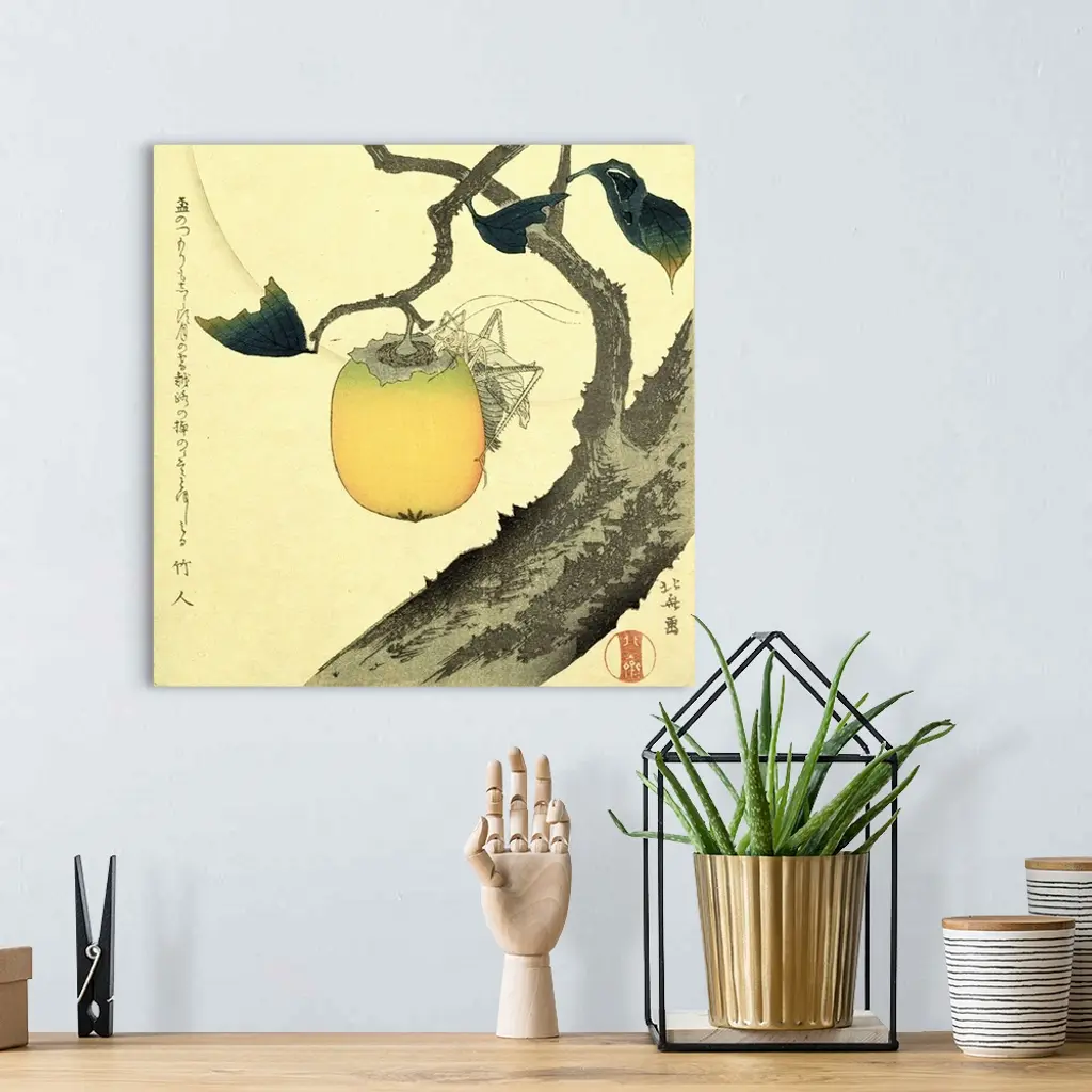 Moon, Persimmon and Grasshopper, 1807 by Katsushika Hokusai (1760-1849). Color Woodcut.