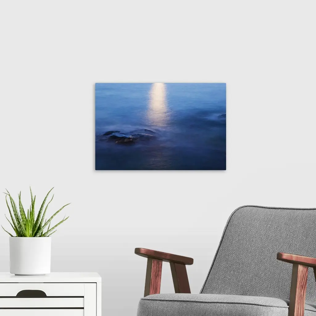 Moon reflection in calm water of Lake Superior, from Artist Point, Minnesota wall art for home and office decor. Discover canvas art prints, photos, mural, big canvas art and framed wall art in GreatBigCanvas.com's varied collections.