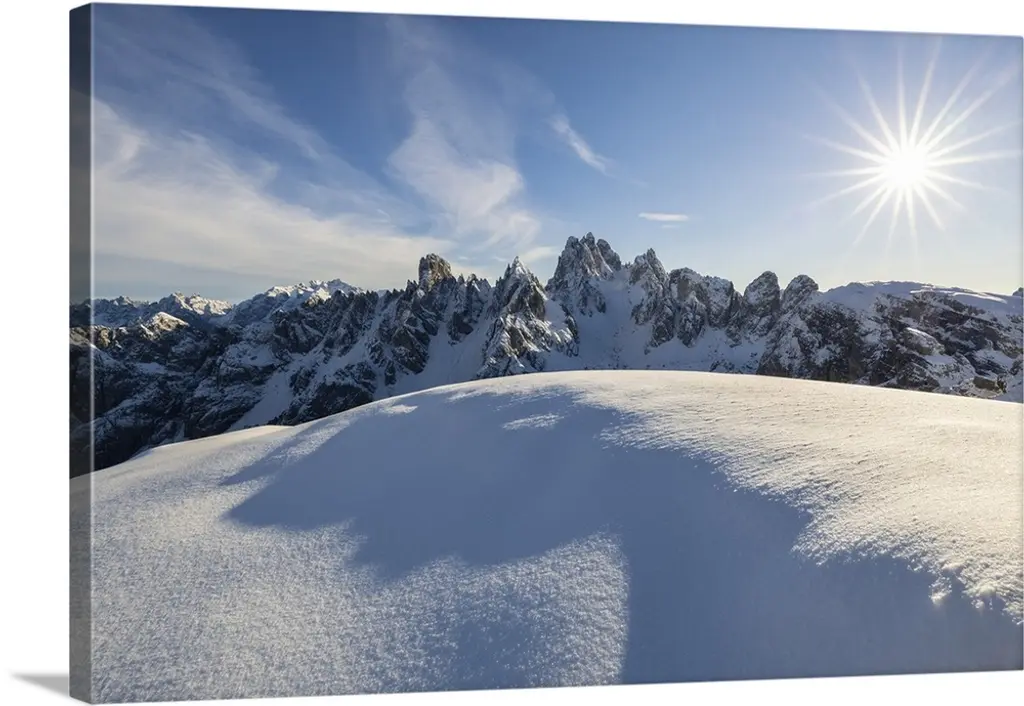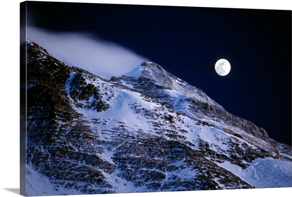 Moon Rising Over Snow Covered Mountain Peak At Hatcher Pass In Southcentral Alaska