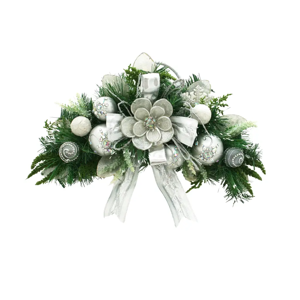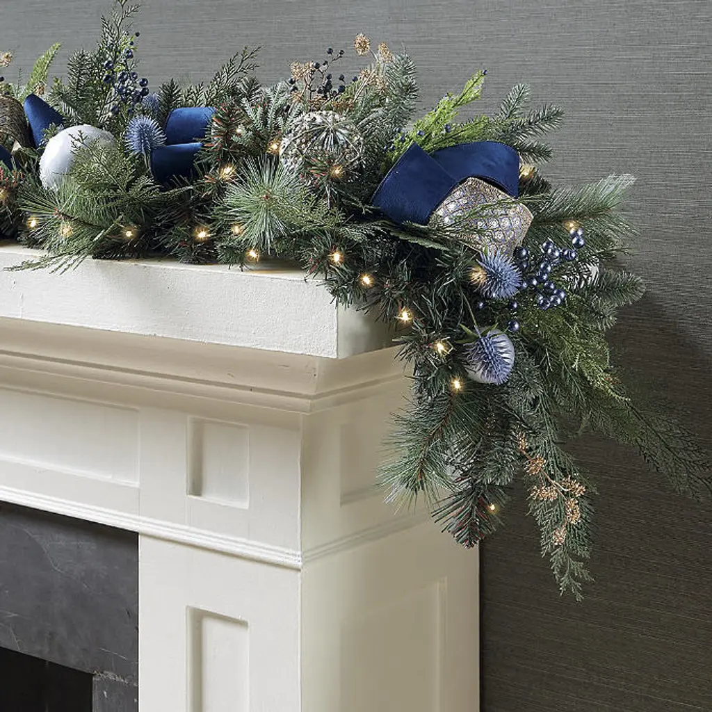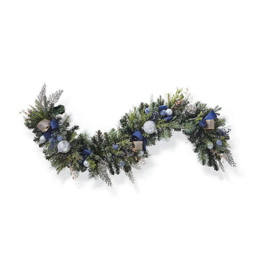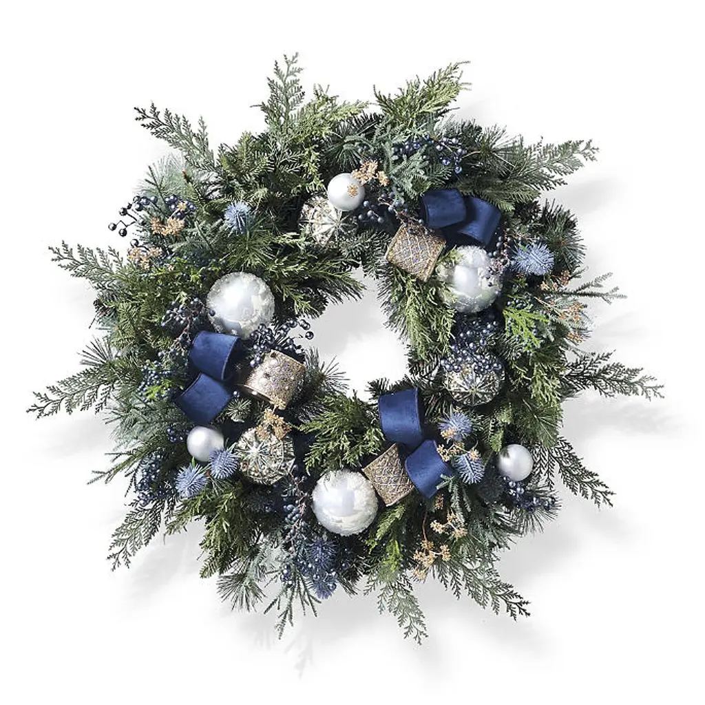 Designed to complement our Moonlit Merriment Collection, this wreath and garland feature lifelike foliage accented with glass and shatterproof ornaments and ribbons. Prelit with 100 warm white LED lights, this wreath and garland are a festive addition to your holiday decor. For indoor use Glass and shatterproof ornaments 100 warm white LED lights Use the built-in timer option to automatically turn on the lights for eight hours and off for 16 hours Requires three C batteries (not included) Three-wire system provides even lighting exposure and reduces fading Fluff and shape greenery after unpacking Wipe clean with a soft, dry cloth or duster Store in a bag in a cool, dry location protected from sunlight Imported A Frontgate exclusive. At Frontgate, our primary focus is quality. We guarantee that every product we sell will stand up to the supreme test – our customers' satisfaction. To learn more about our policies, visit our Shipping & Processing, Returns & Exchanges and Warranty & Price Guarantee pages. Designed to complement our Moonlit Merriment Collection, this wreath and garland feature lifelike foliage accented with glass and shatterproof ornaments and ribbons. Prelit with 100 warm white LED lights, this wreath and garland are a festive addition to your holiday decor. For indoor use Glass and shatterproof ornaments 100 warm white LED lights Use the built-in timer option to automatically turn on the lights for eight hours and off for 16 hours Requires three C batteries (not included) Three-wire system provides even lighting exposure and reduces fading Fluff and shape greenery after unpacking Wipe clean with a soft, dry cloth or duster Store in a bag in a cool, dry location protected from sunlight Imported A Frontgate exclusive. At Frontgate, our primary focus is quality. We guarantee that every product we sell will stand up to the supreme test – our customers' satisfaction. To learn more about our policies, visit our Shipping & Processing, Returns & Exchanges and Warranty & Price Guarantee pages.