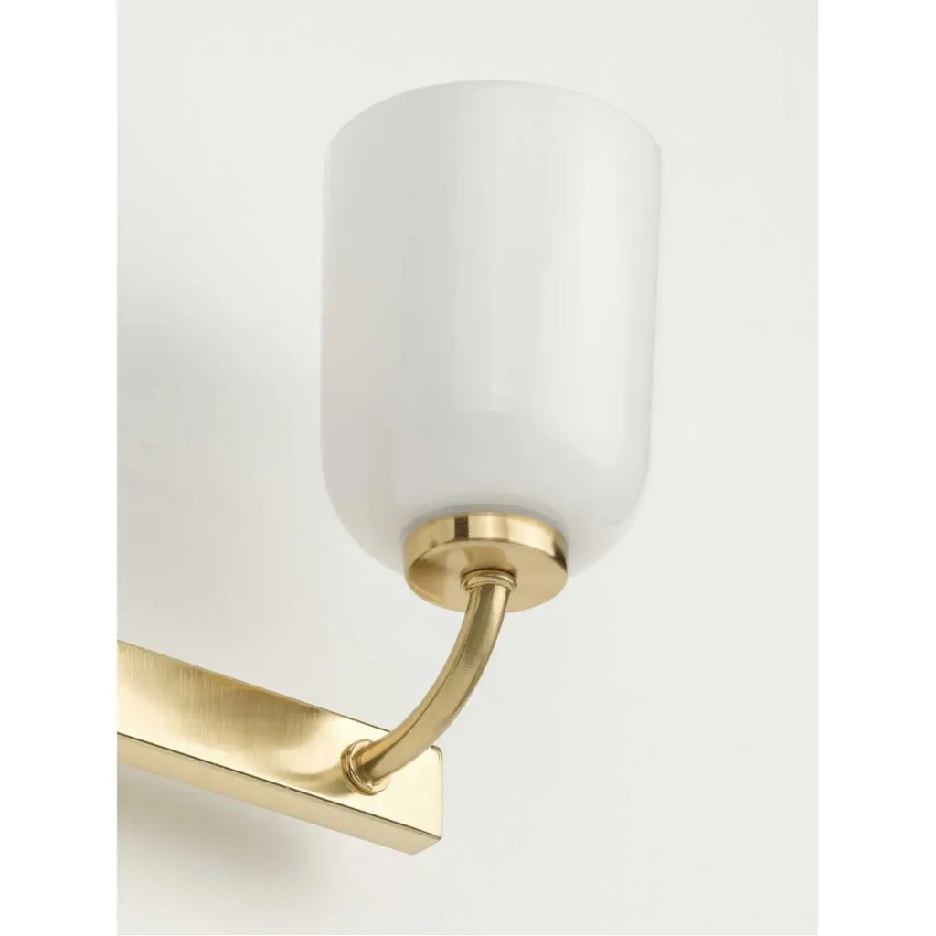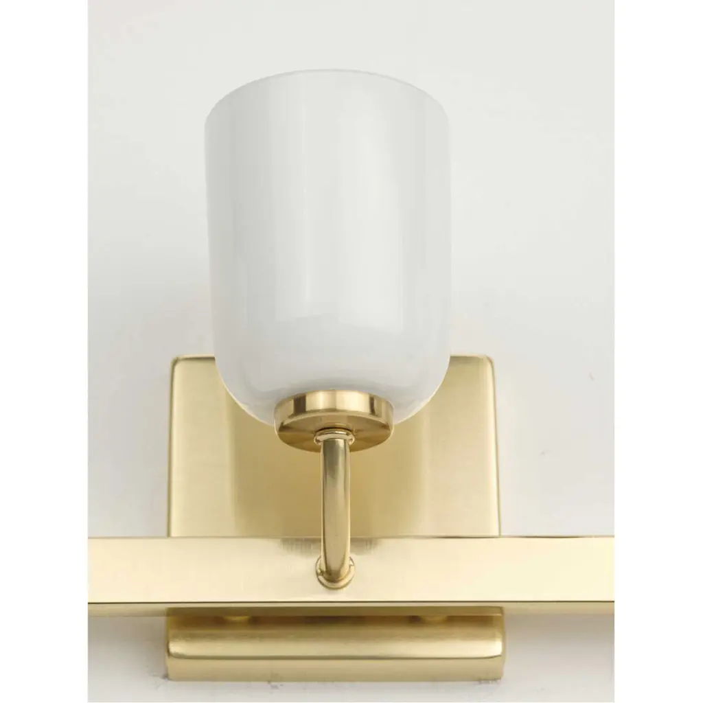 Your life is busy and hectic, but your home can be an oasis of tranquility and calm under the classic, timeless glow of this classic light fixture. Angelic white opal glass shades affixed to a simple metal bar in a delicate design. A smooth, square backplate coated in a beautifully understated satin brass finish serves as a stunning backdrop for this must-have light fixture. This bath light is designed to use with G9 LED light bulbs.