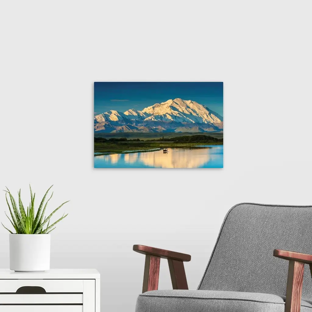 Moose In A Pond In Denali National Park With Mount Mckinley And The Alaska Range